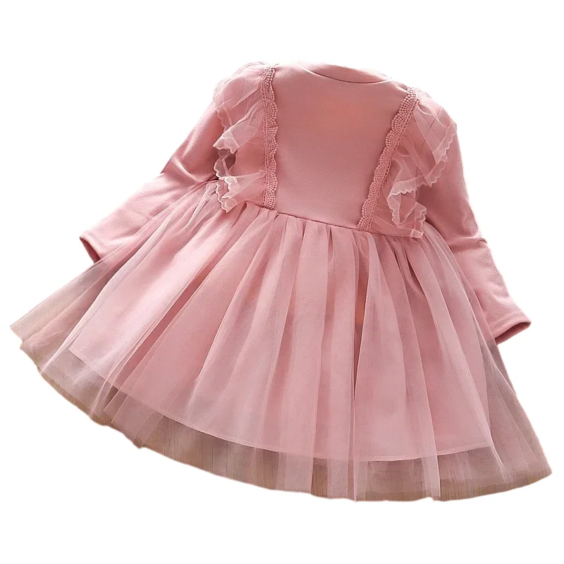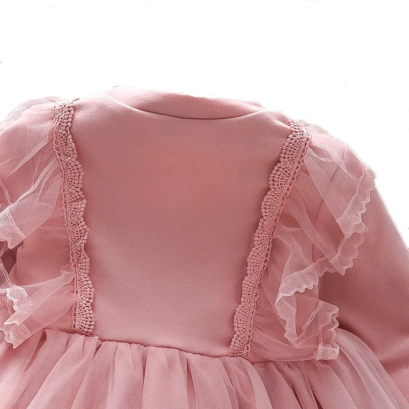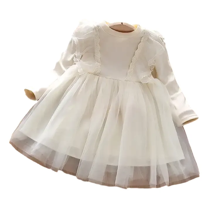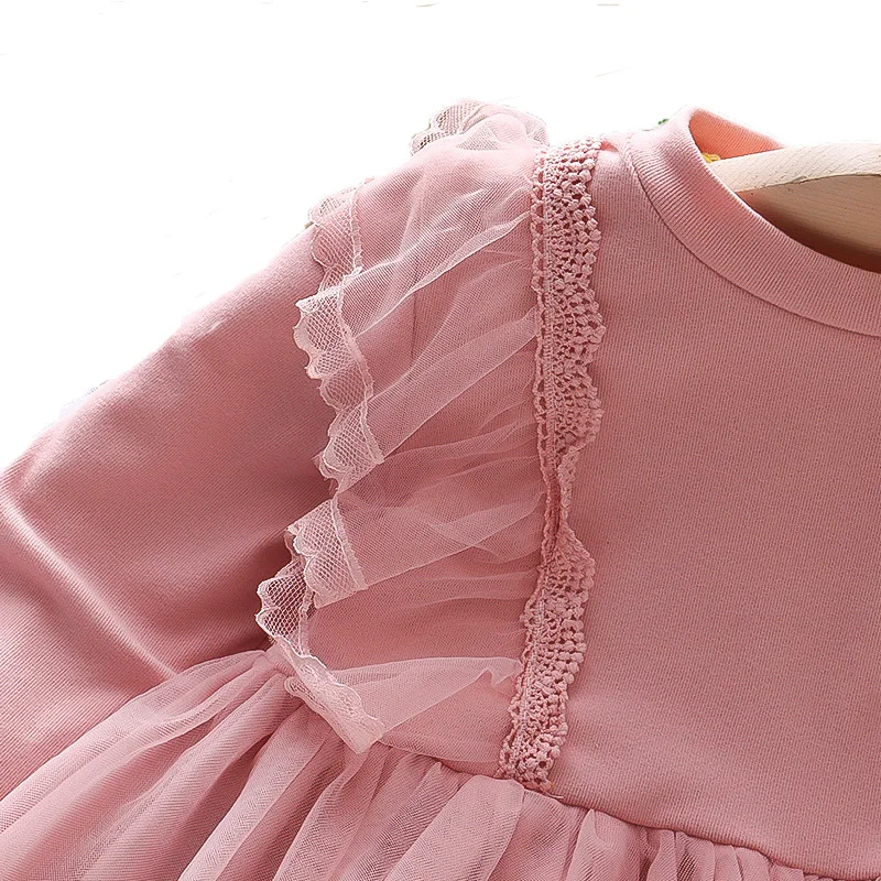 Customizable Spring Fashion Long Sleeve Lace Mesh Princess Dress for Girl Soft Fabric A-Line Kids Dress