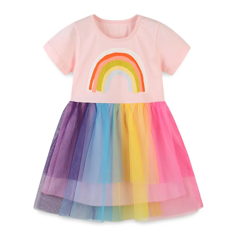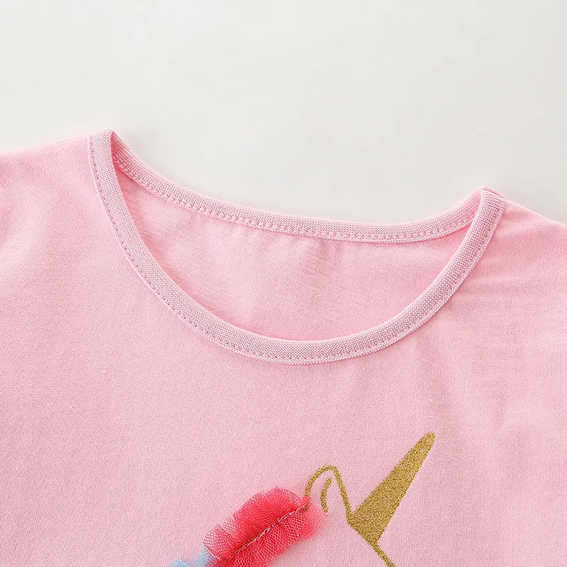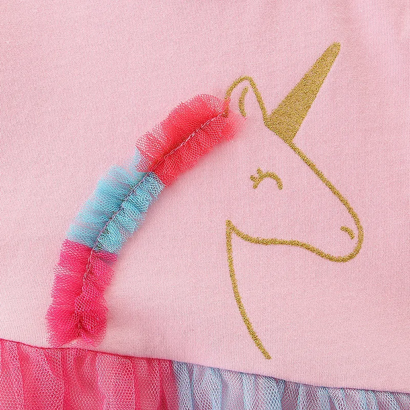Latest Style Pink Casual Toddler Unicorn Dress Colorful Summer Short Sleeve Dresses for Girls