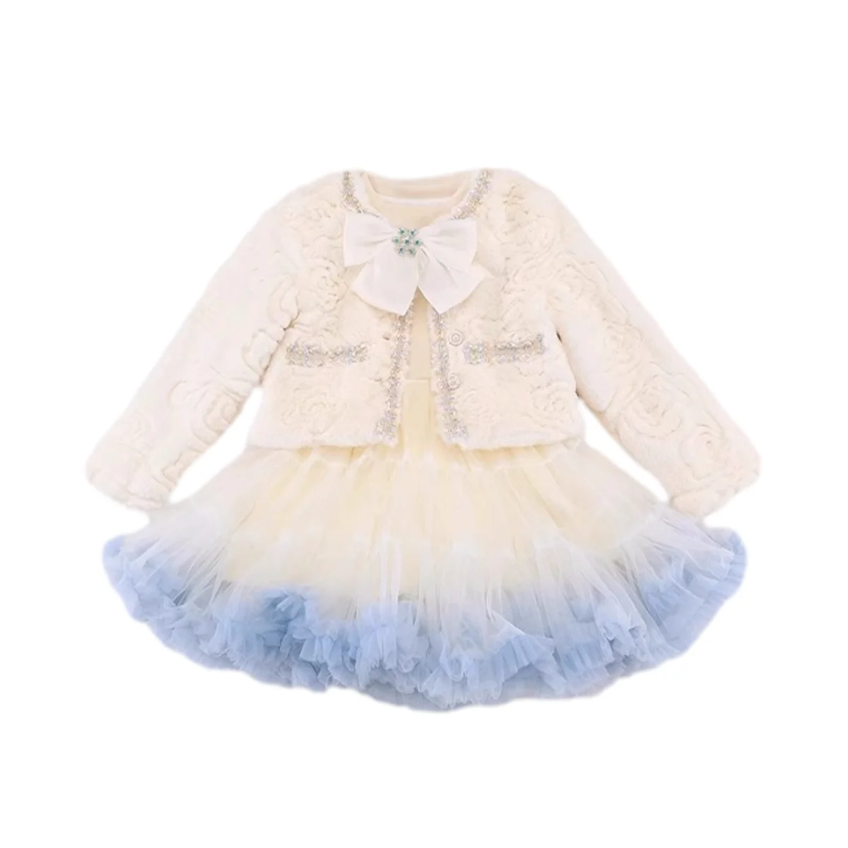 Customizable Winter New Design Girls Clothing Sets Velvet Carton Princess Dresses Quilted Faux Fur Jacket Kids Two Pieces Sets