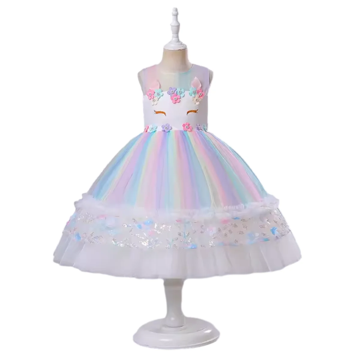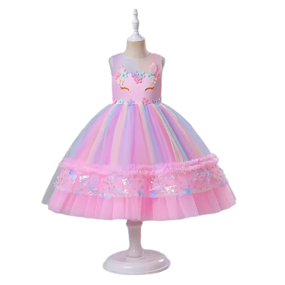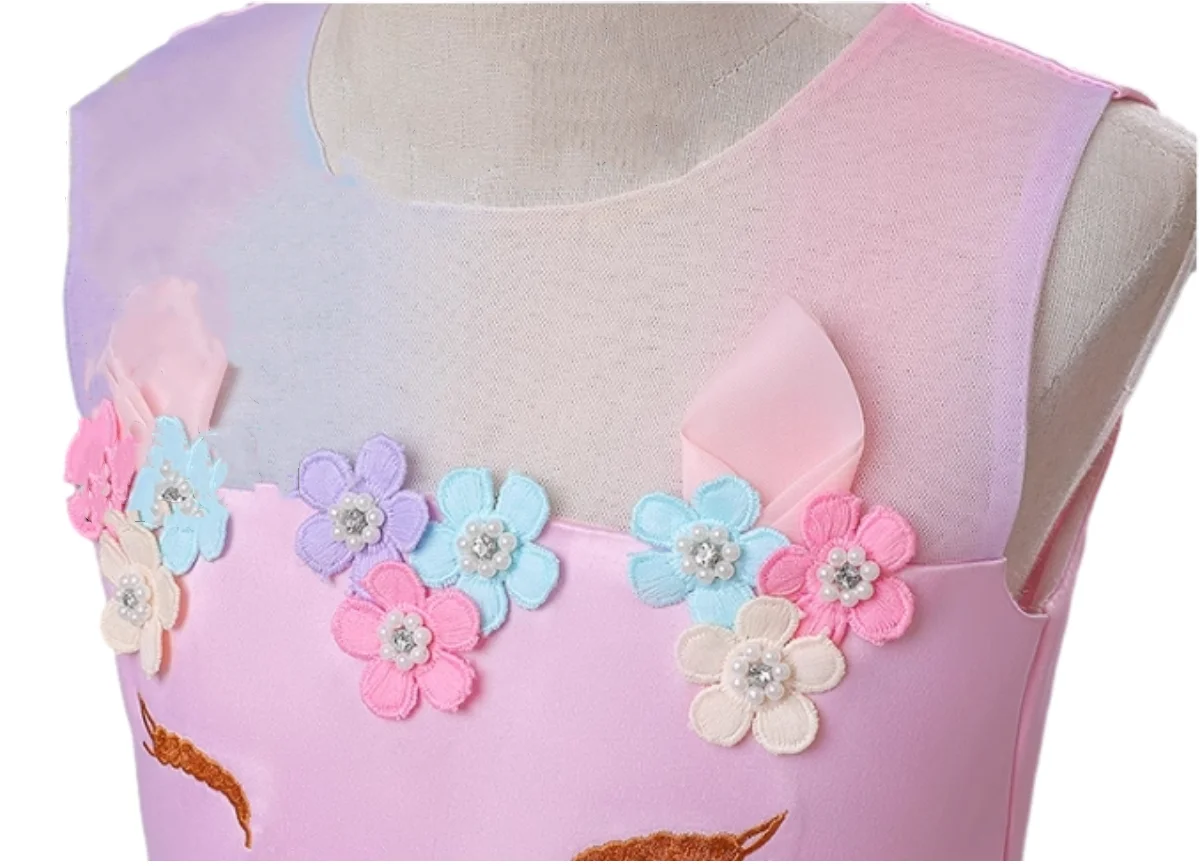 Customizable Summer New Arrival Unicorn Rainbow Tulle Girls Dresses Sleeveless Princess Dress for Kids