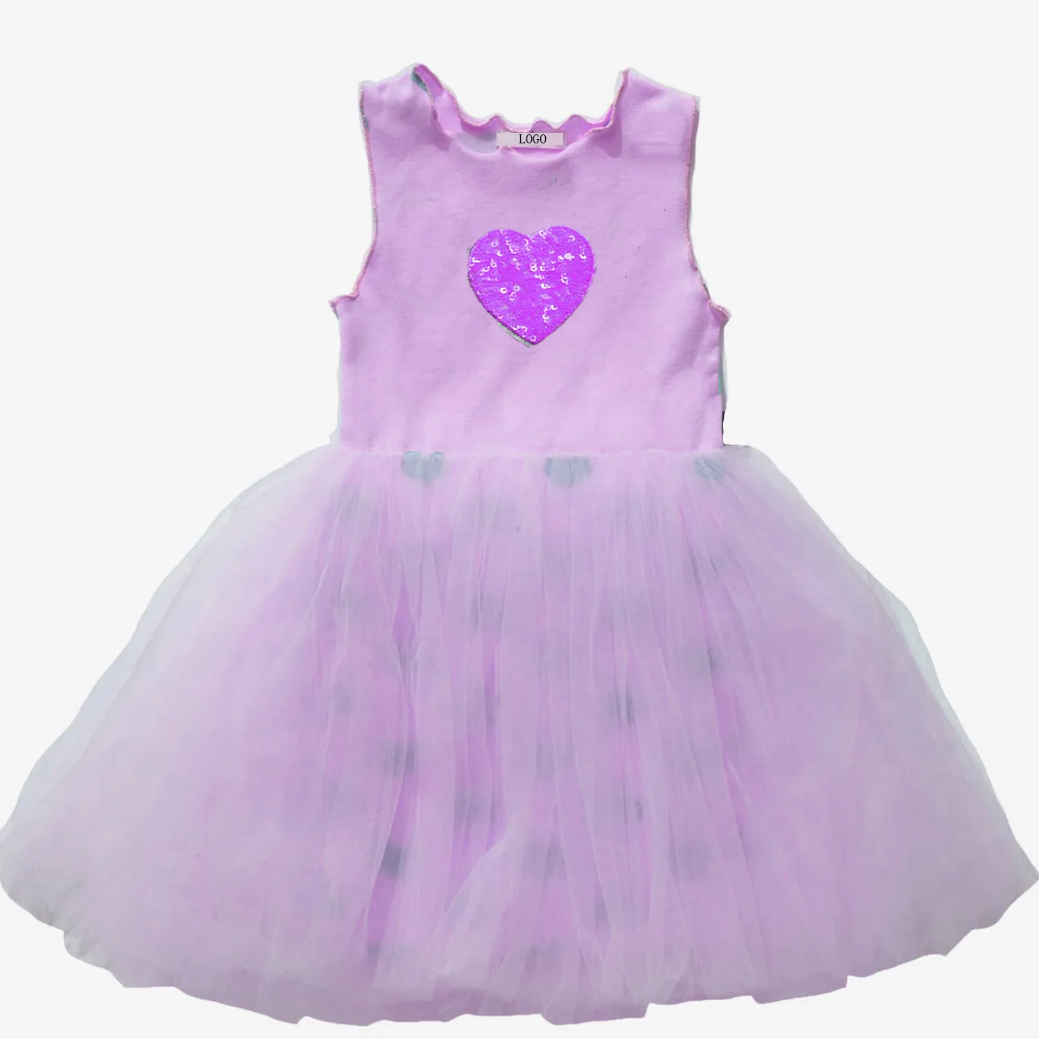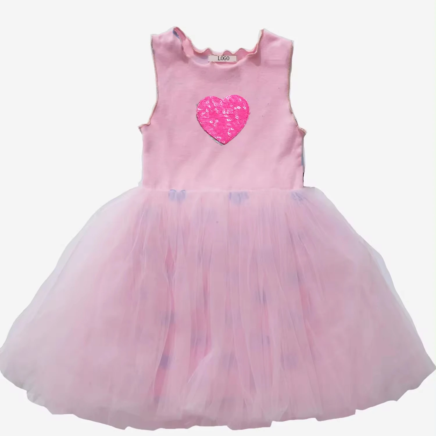 Factory Direct Price Cute Sequin Heart Patch Latest Children Dress Designs Girls Dresses
