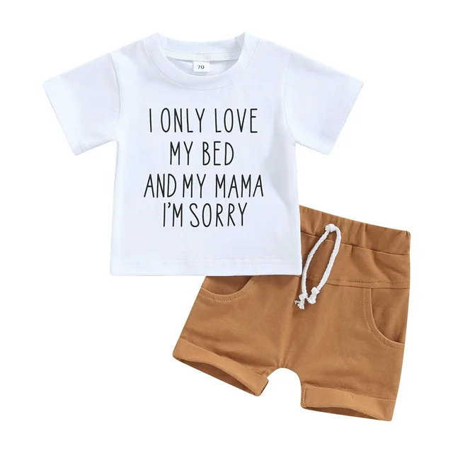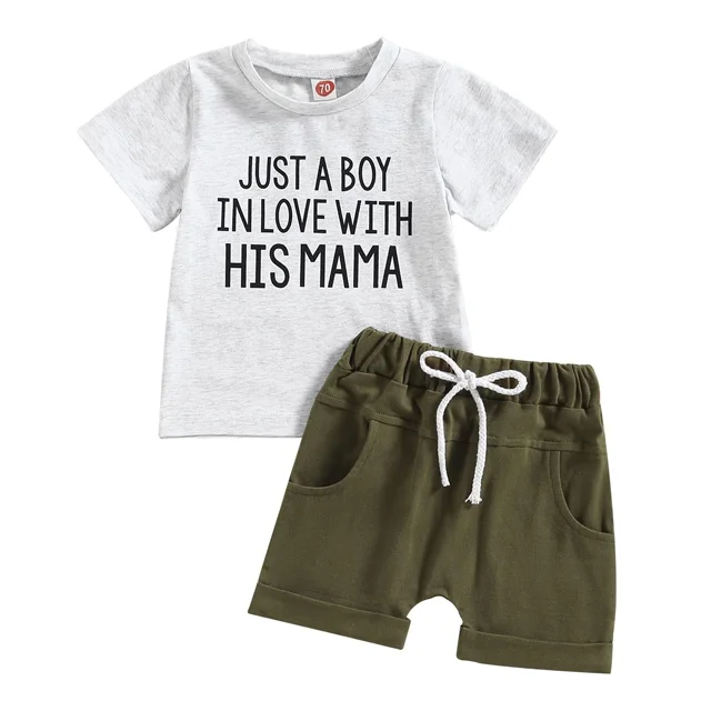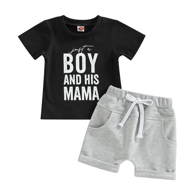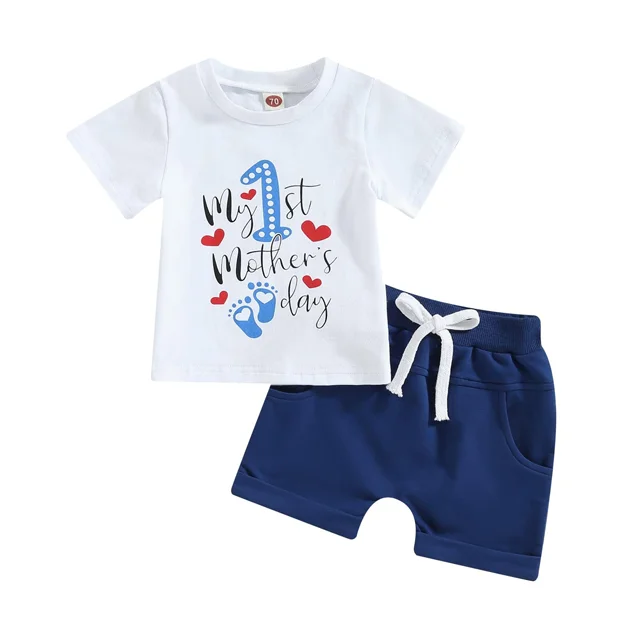 Mothers Day Gift Customizable Boy's Summer Outfit Short Sleeve T-Shirt Tops Shorts Kids Clothing Sets