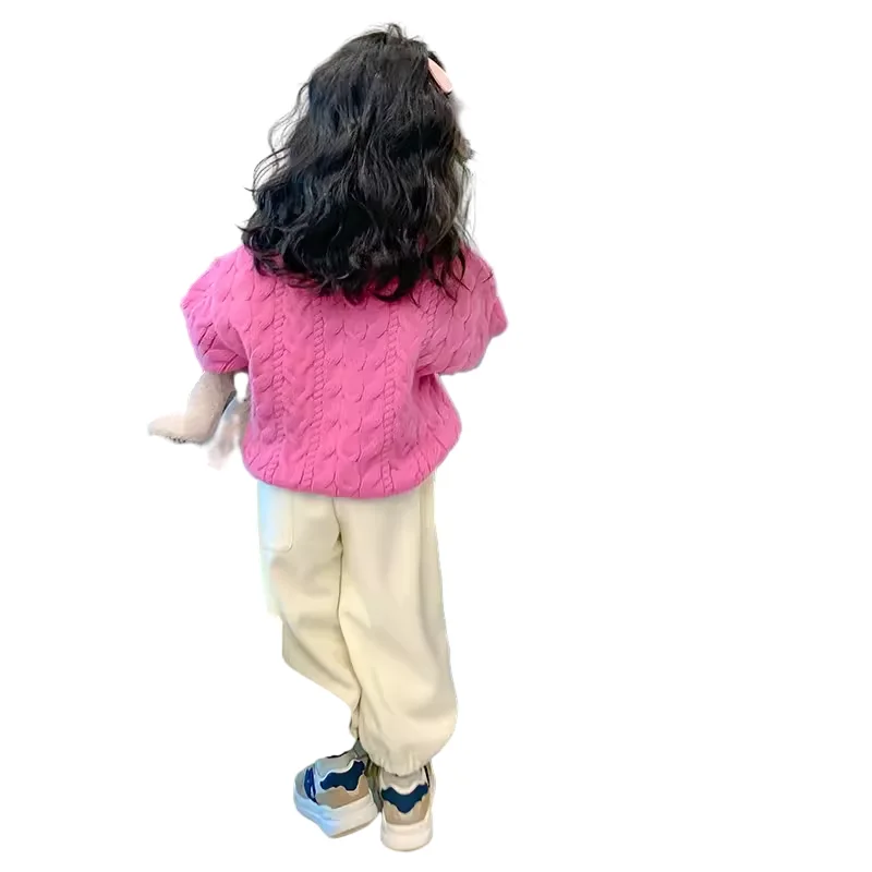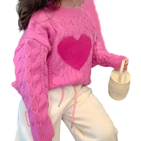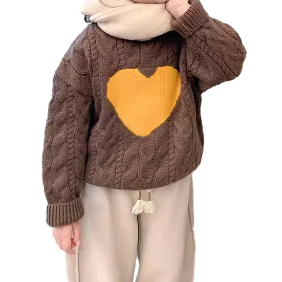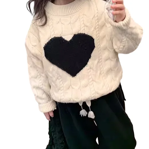 Customizable Winter New Design O-neck Girls Sweaters Cute Knitted Kids Bottoming Sweater With Pink Heart Pattern