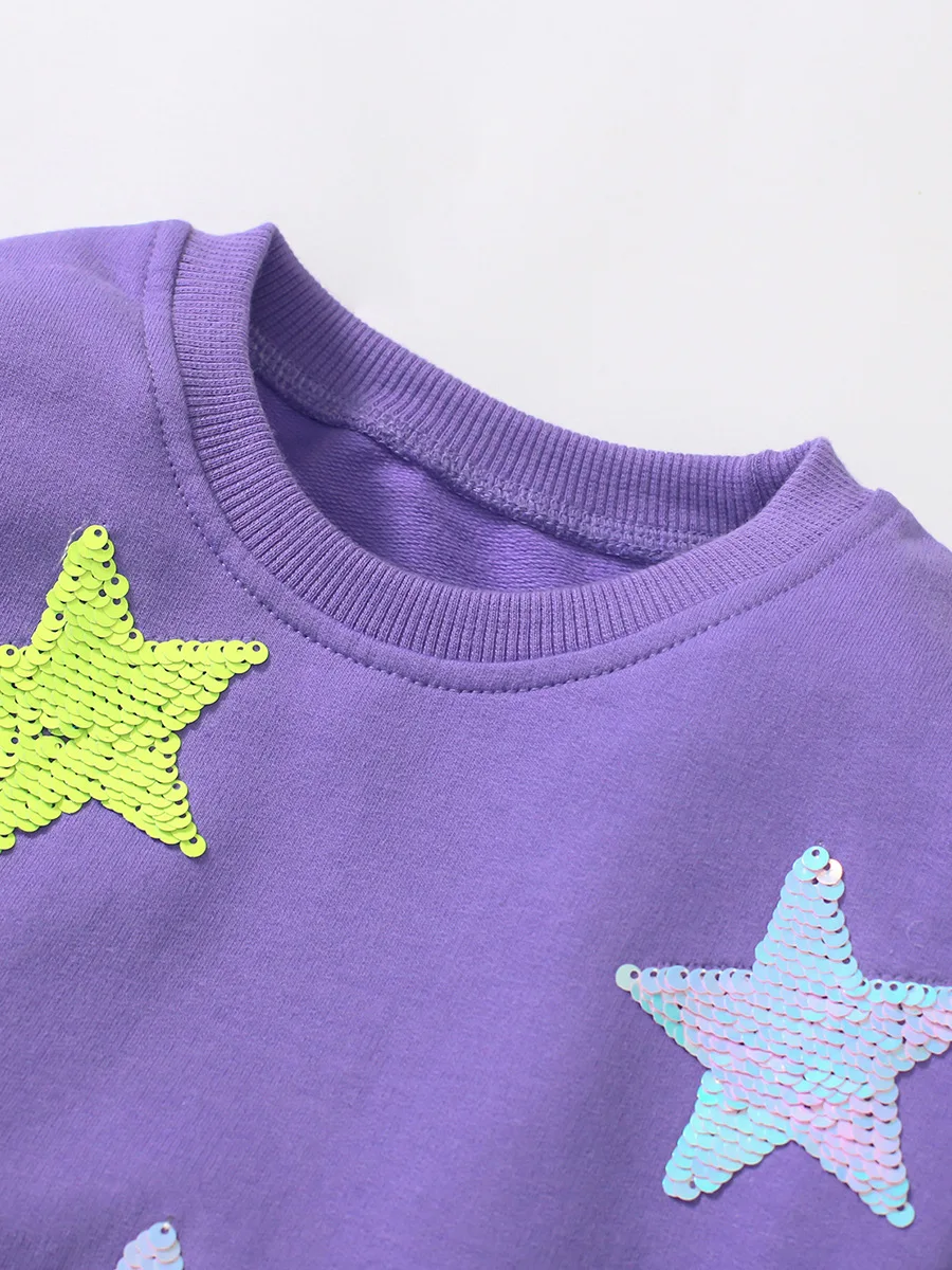 Customizable New Style Baby Girl Sequin Tulle Dress Long Sleeve Spring Fall Star Pattern Casual Dress