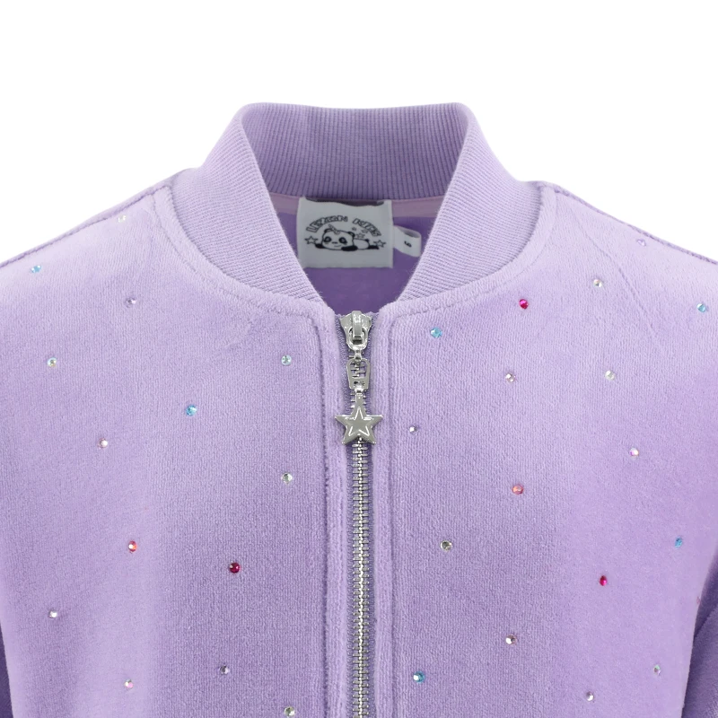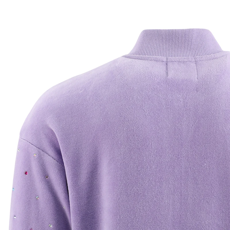 Customizable Girls Purple Sparkling Diamonds Casual Set Zip-Up Jacket Flared Pants Kids Fashion Outfit