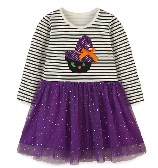 Customizable Spring Autumn New Design Long Sleeve Girl Dress Cotton Casual Tulle Striped Embroidery Dress