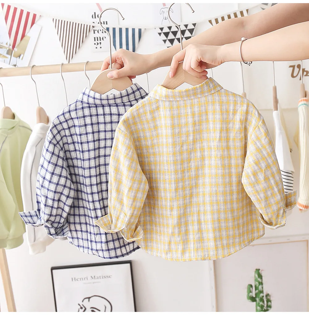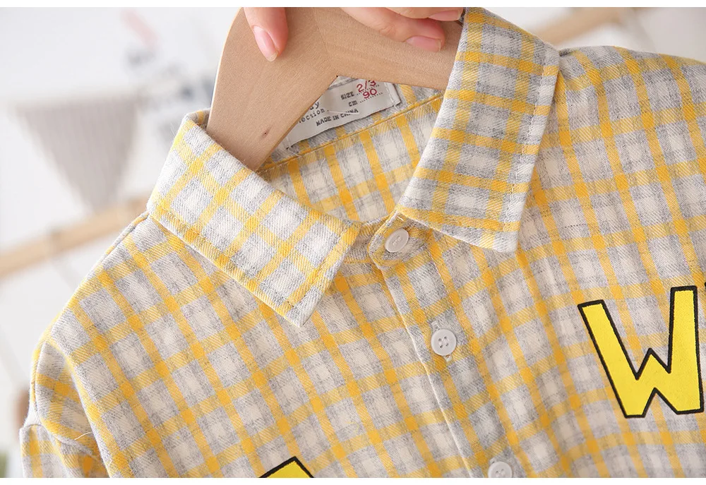 Customizable New Style Cotton Plaid Shirt Turn-Down Collar Long Sleeve Printing Boys Clothes Set