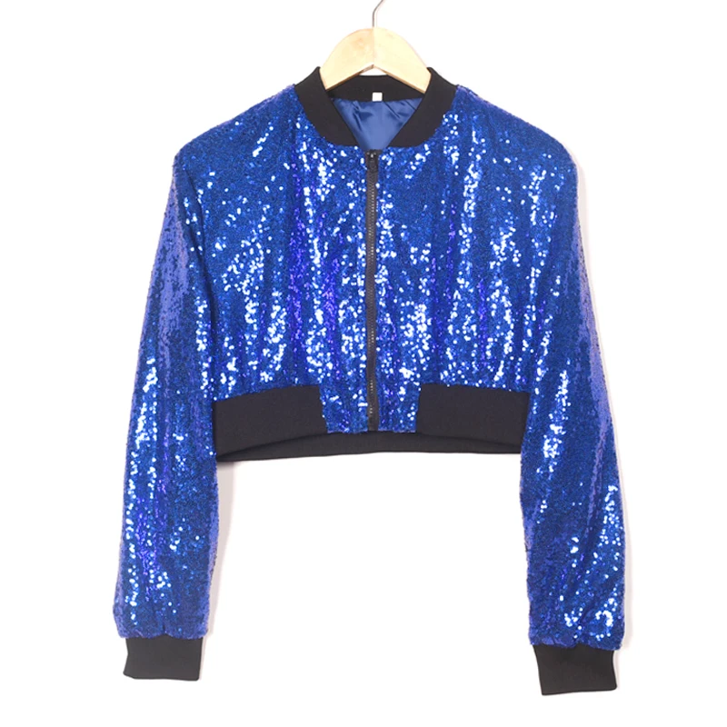 Customizable Hot Selling Kids Zipper Short Girls Sequined Bomber Jacket Custom Patches for 2-14T