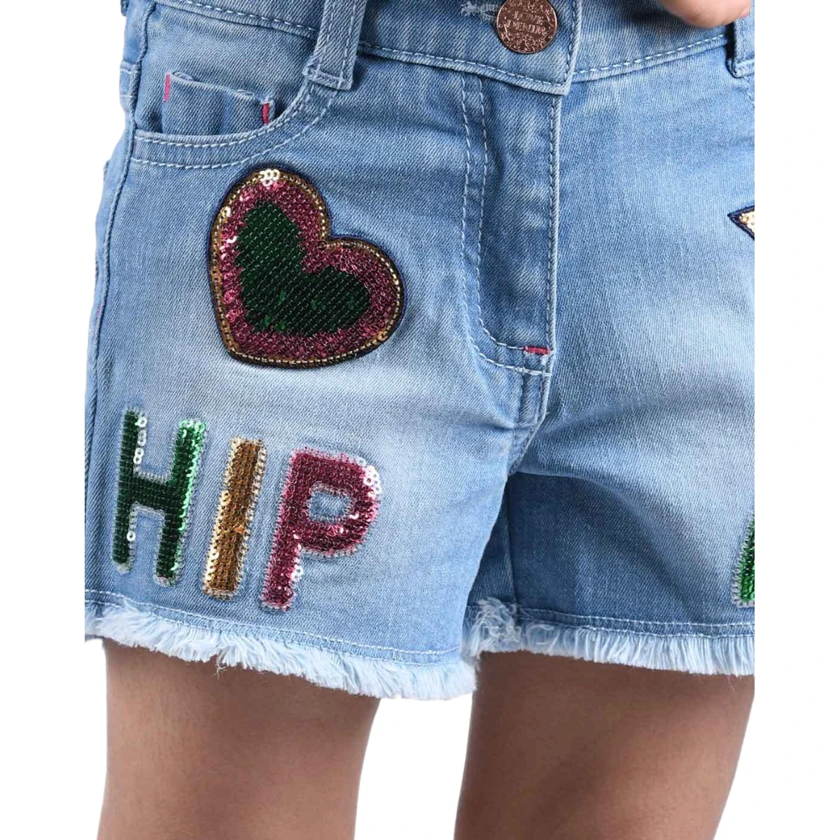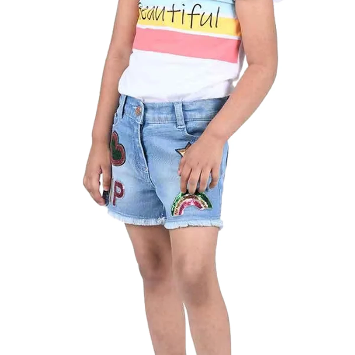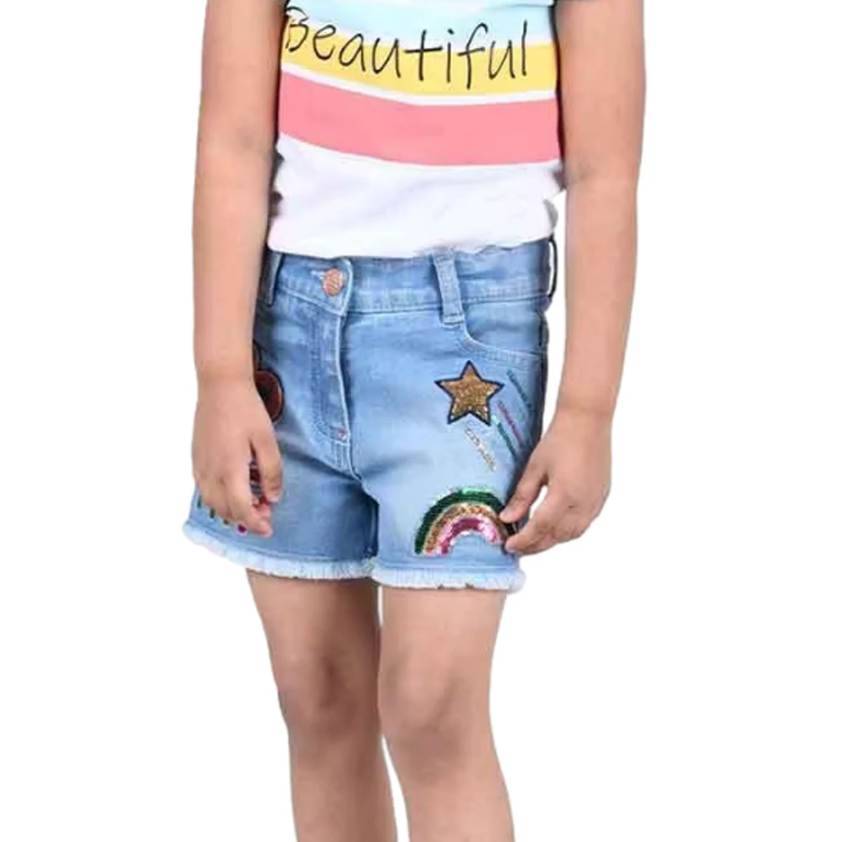 Customizable Stylish Chic Jeans Shorts Hip Hop Sequin Patches Star Rainbow Girls Denim Shorts
