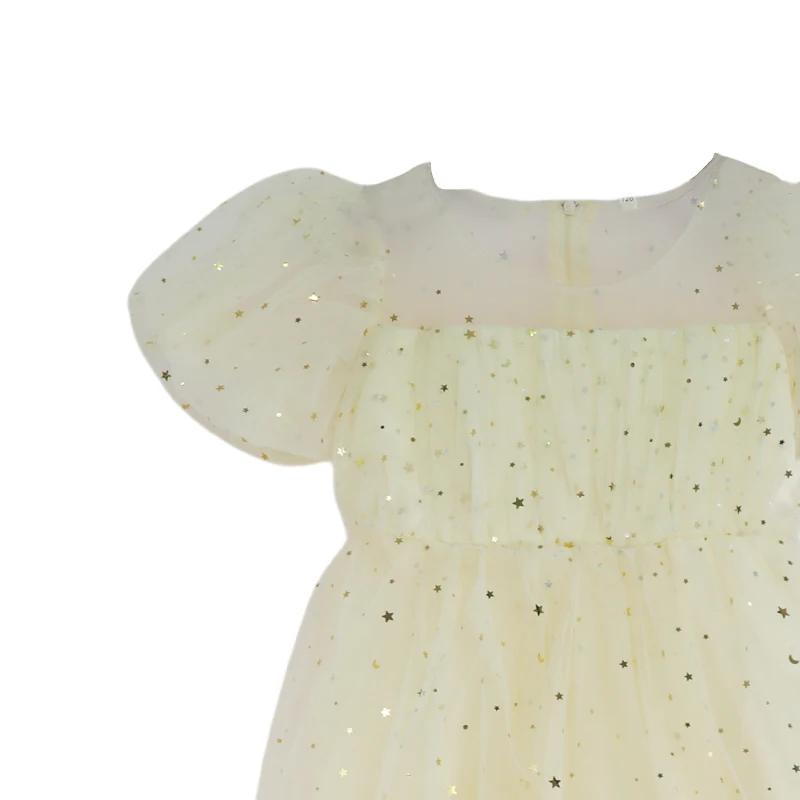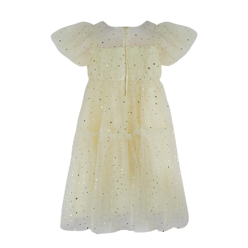 Customizable Girls Shiny Mesh Party Sequins Dress Puffy Sleeves Star Decor Layered Tulle Kids Fashion Outfit