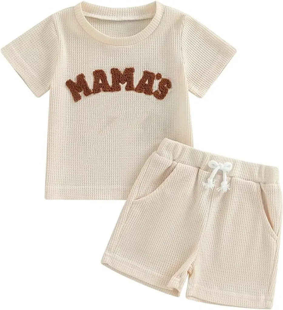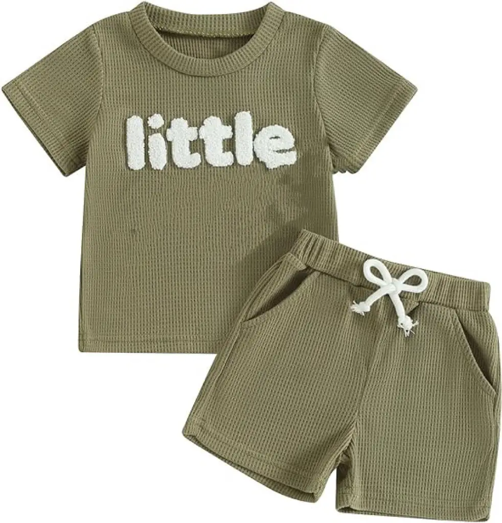OEM Customize Embroidery Boy Clothes Set Summer Short Sleeve Print T-Shirt Tops Shorts Set