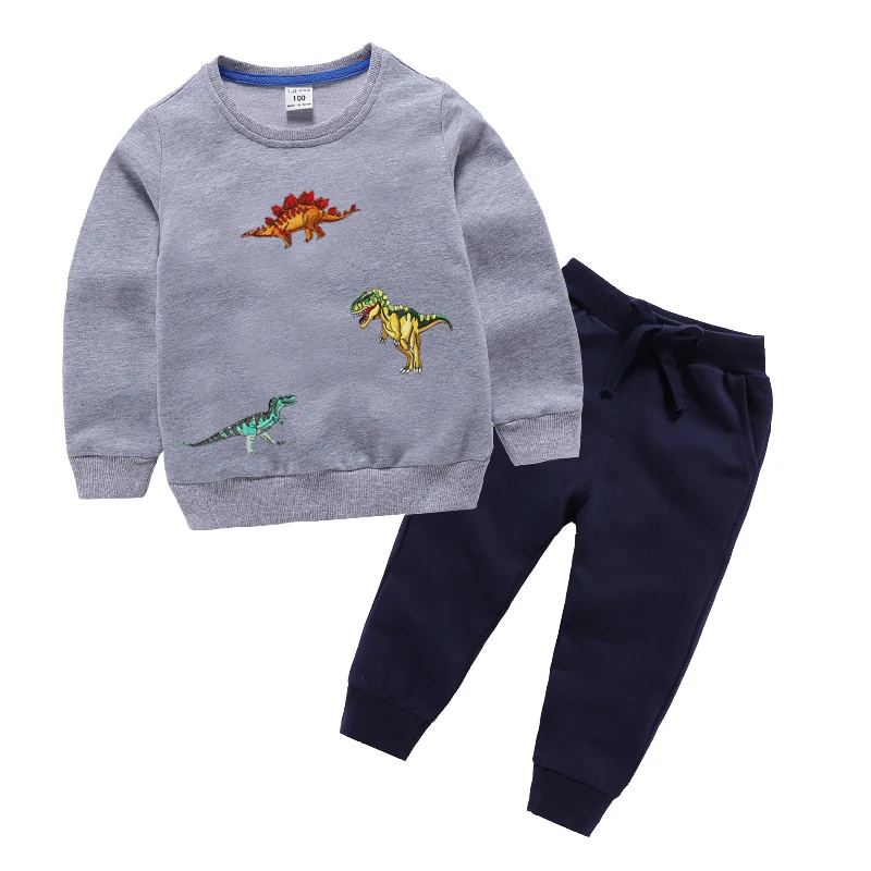 Wholesale Solid Plain Dinosaur Embroidery Kids Outfit Set Baby Kids Boys Clothing Set for Fall