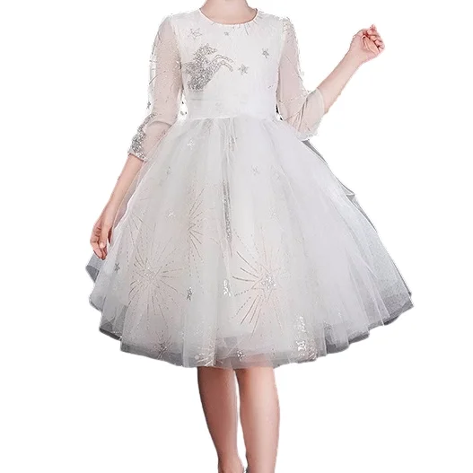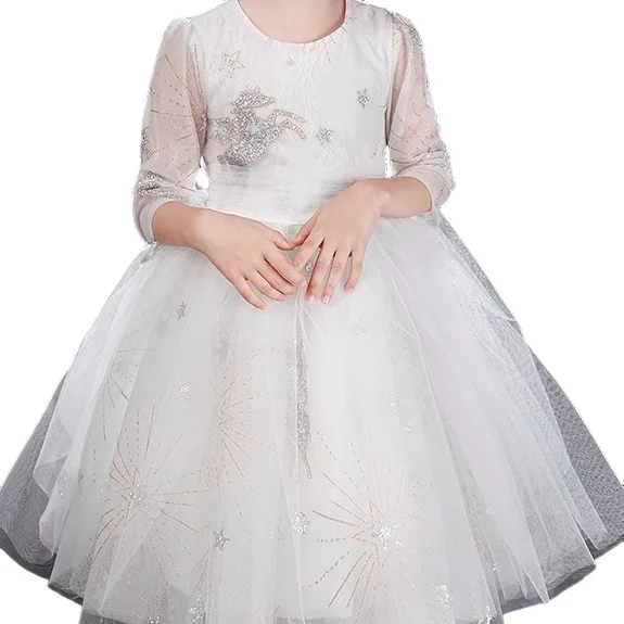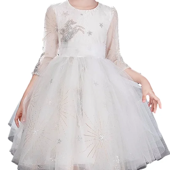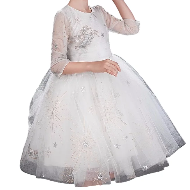 Customization Design Sequined Unicorn Long Sleeve Girls Tulle Dresses Cute Princess Dress Puff Party Dress