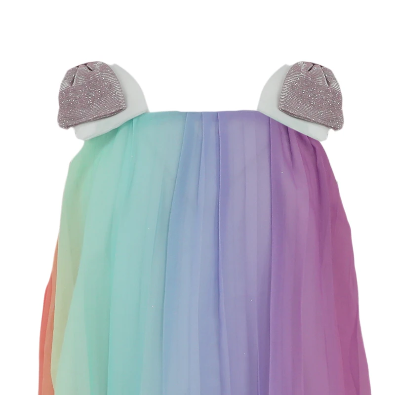 Customizable Girls Rainbow Tulle Dress Shiny Unicorn Inspired Straps Sparkling Party Outfit