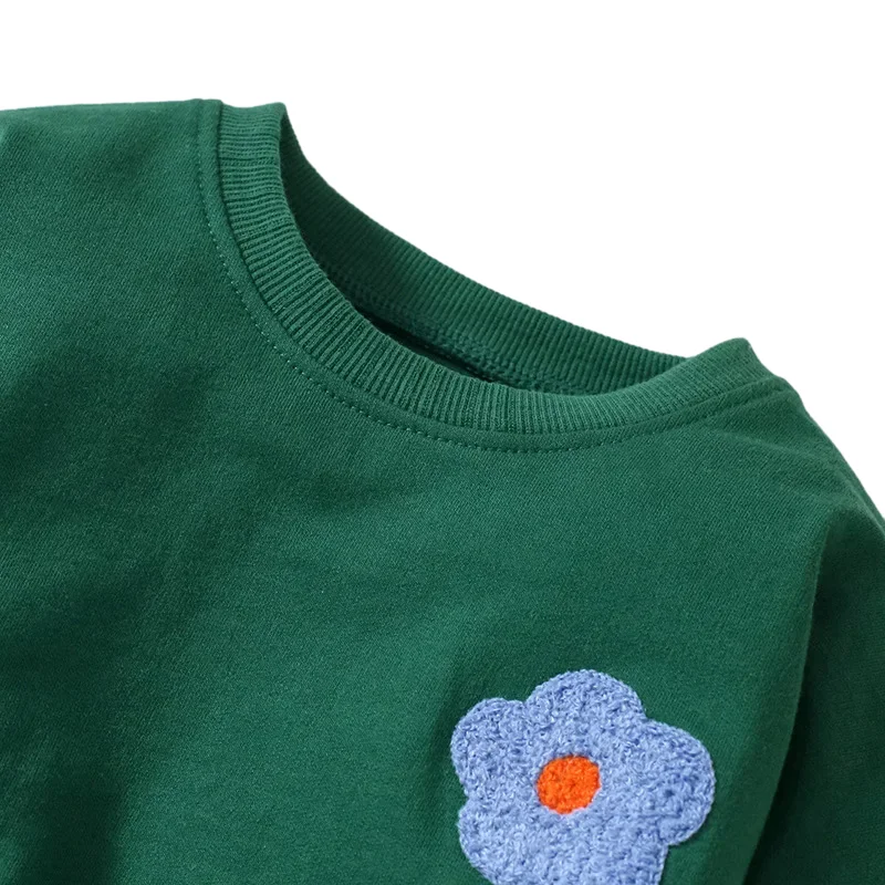 High Quality Crew Neck Embroidery Kids Sweatshirt Custom Fleece Cotton Girls Hoodies Sweatshirts