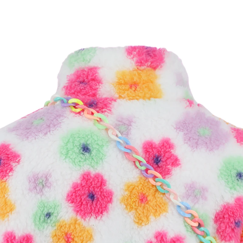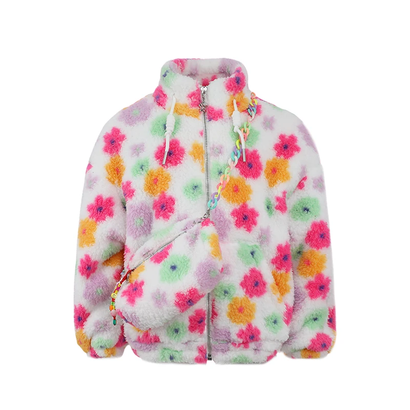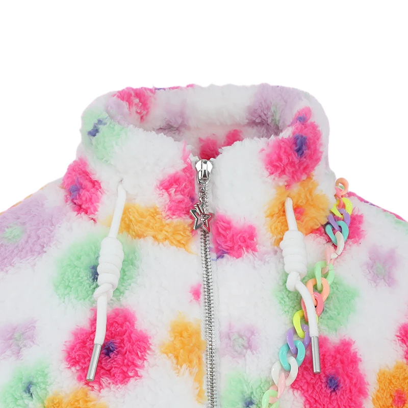 Customizable Stylish Fleece Jacket Girls Vivid Flower Pattern Adjustable Hood Trendy Chain Girls Jacket