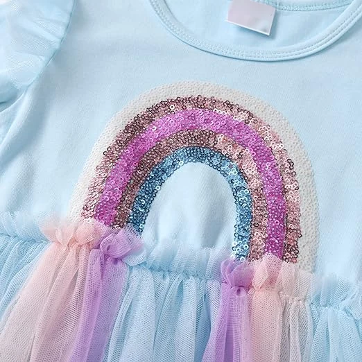 Customizable Explosion Pure Blue Sequin rainbow Tutu Dresses for Girls Kids Lace Dress Girls Dresses