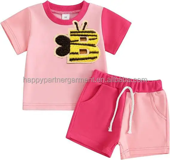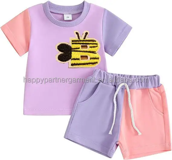 Customize Boy Outfit Set Toddler Patch Letters Summer Casual T Shirt Shorts 2pcs Boys Clothing Set