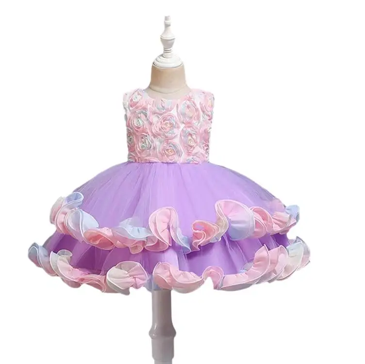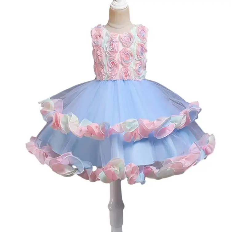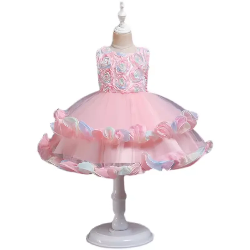 Customization Summer Sequined and Lace Puff Party Girls Dresses for 2-12 Children Clothing