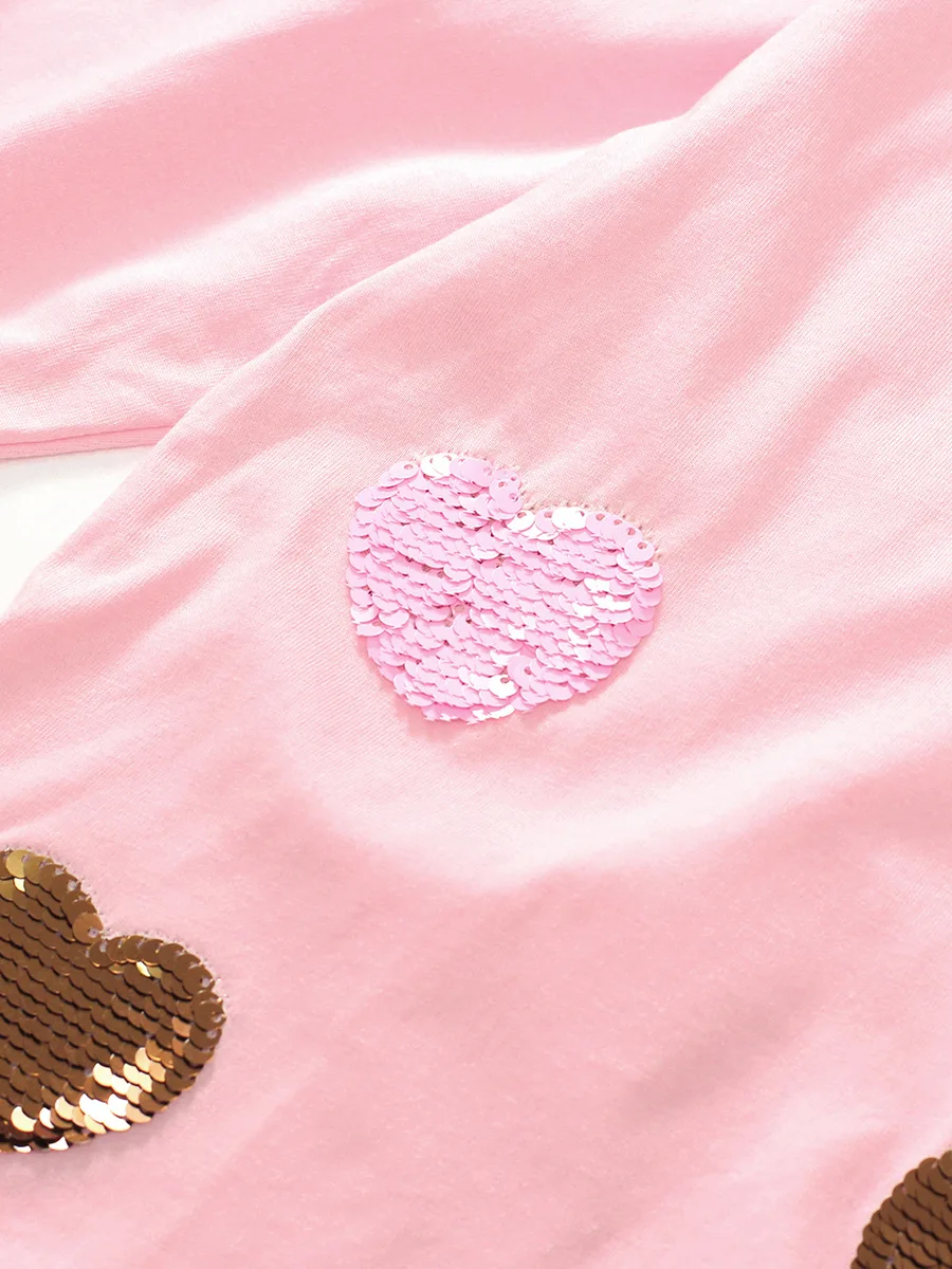 Customization Tulle Dress Sets Cute Girl Clothing Sets Long Sleeve Children Clothing Set With Sequin Heart Pattern