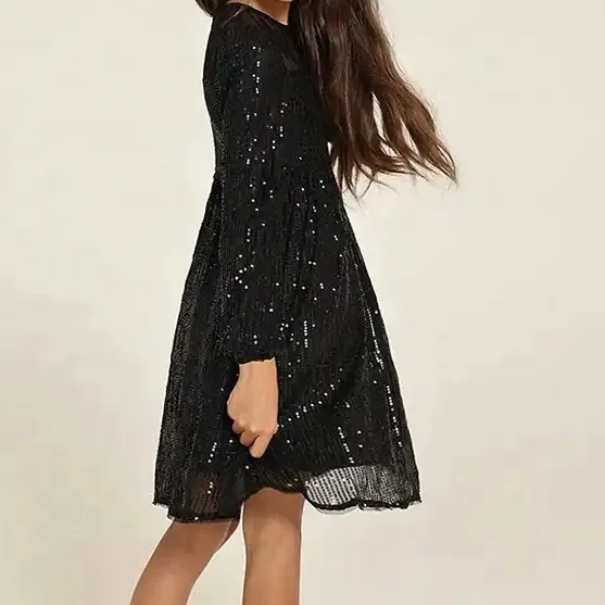 Hot Sale Birthday Girls Clothes Kids Princess Long Sleeve Dress for 2-14 Year Sequins in Party or Birthday
