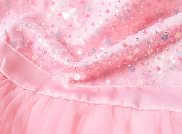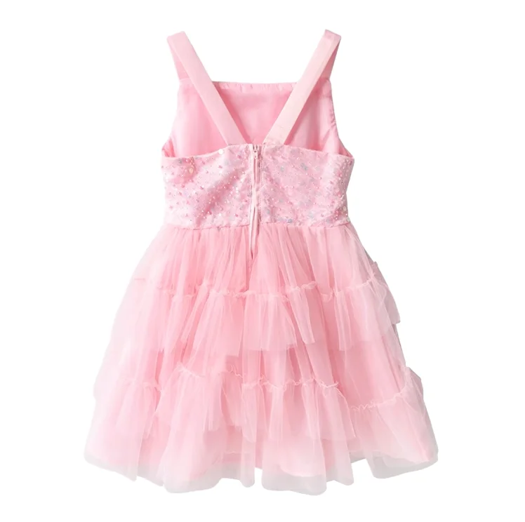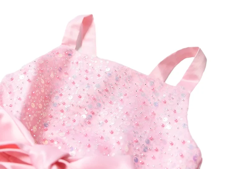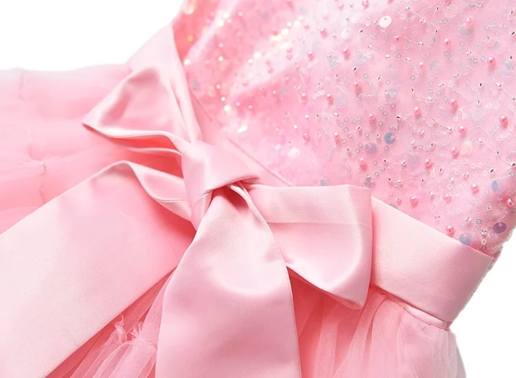 Customizable Summer New Design Sequined Tulle Girls Dresses Sleeveless Bows Pink Cute Kids Princess Dresses
