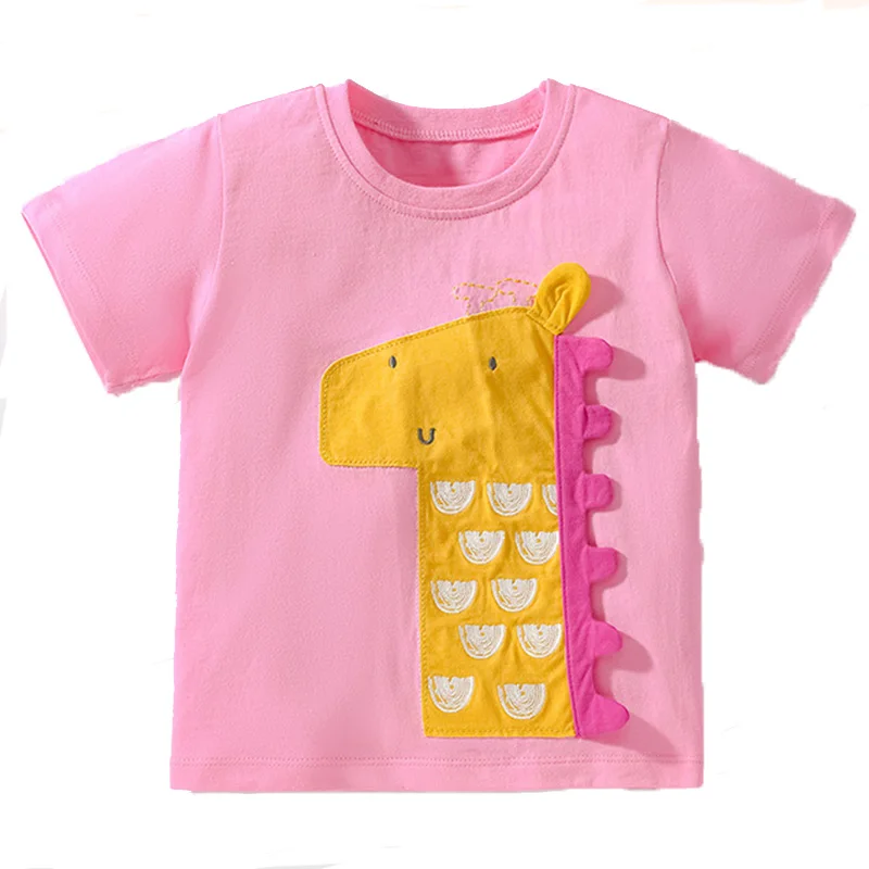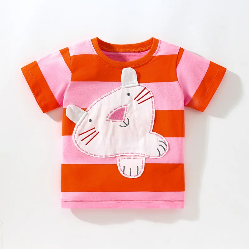 OEM Service Custom Cartoon Patch Girls Short Sleeve T Shirt Summer Kids Shirts for Girls
