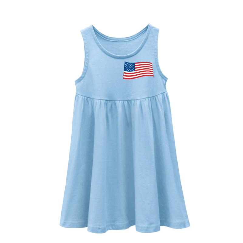 OEM Stylish 100% Cotton Girls Dress Sleeveless Independence Dress for Summer