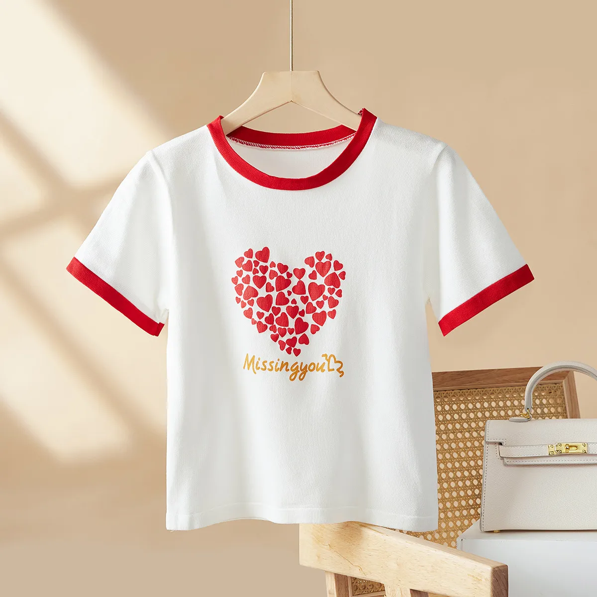 Wholesale Customized Pattern Red Heart Printed Valentine's Day Girls T Shirt for Summer