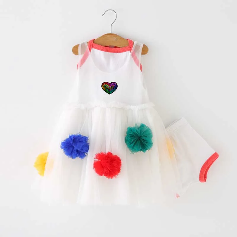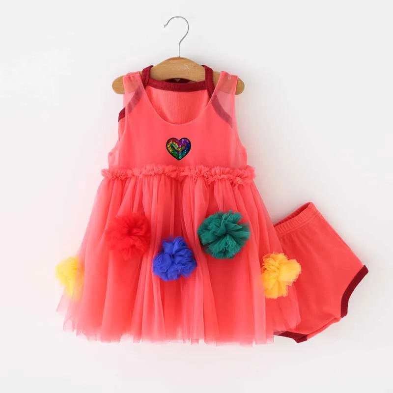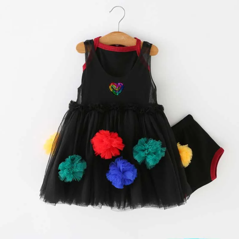 Customizable Fashion Sleeveless Flower Ball Embroidery Three Pieces Mesh Tulle Girls Dress for Summer