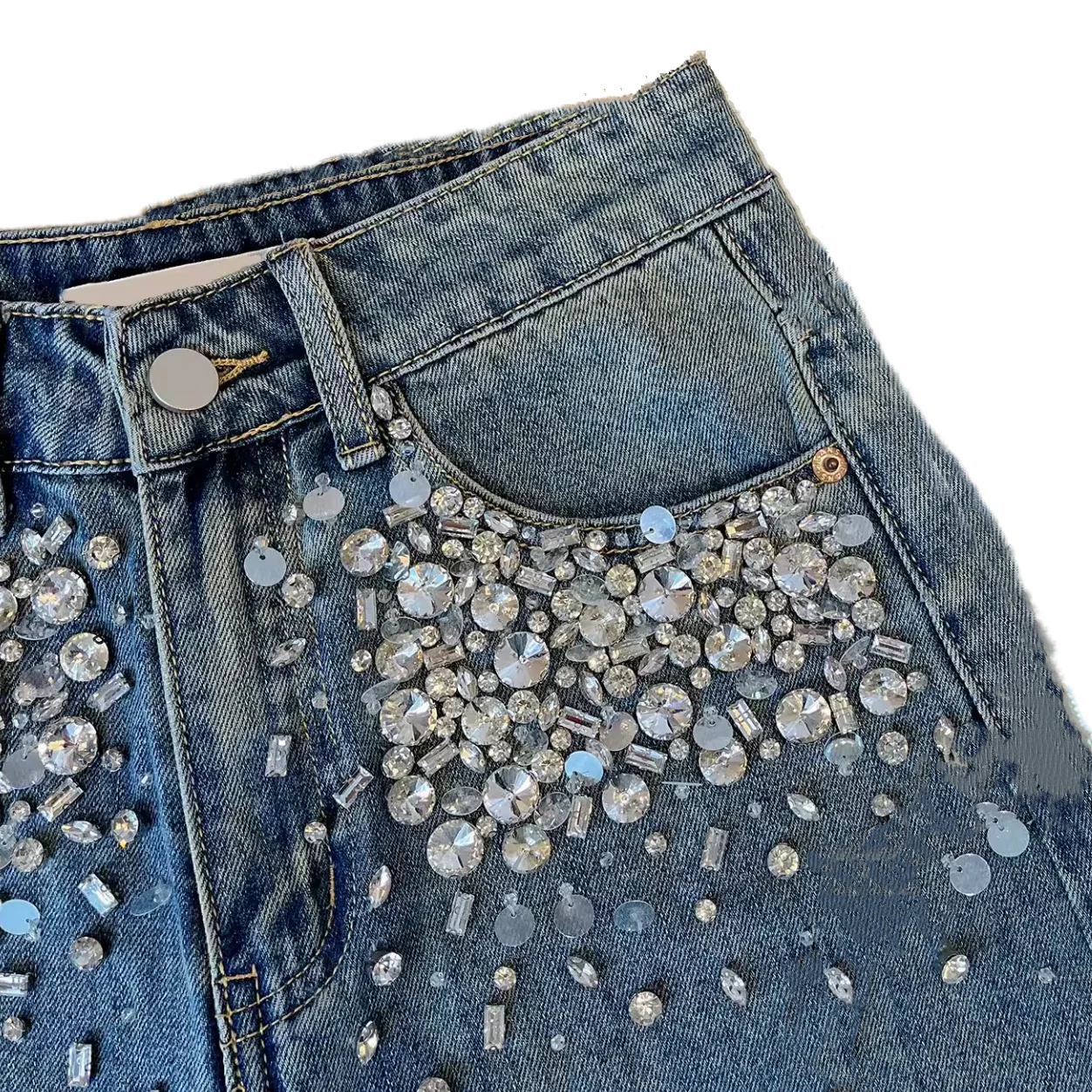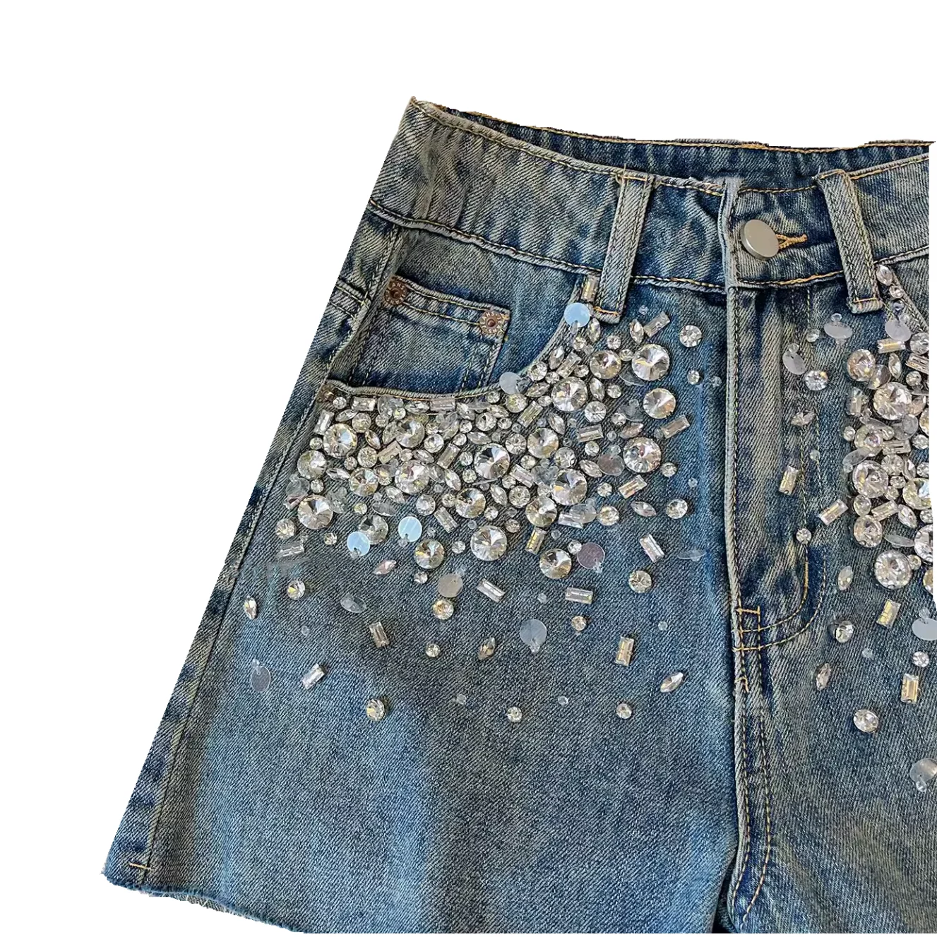 Customizable Summer New Design Denim Ironed Crystal Girls Shorts High Waisted Slimming Kids Shorts