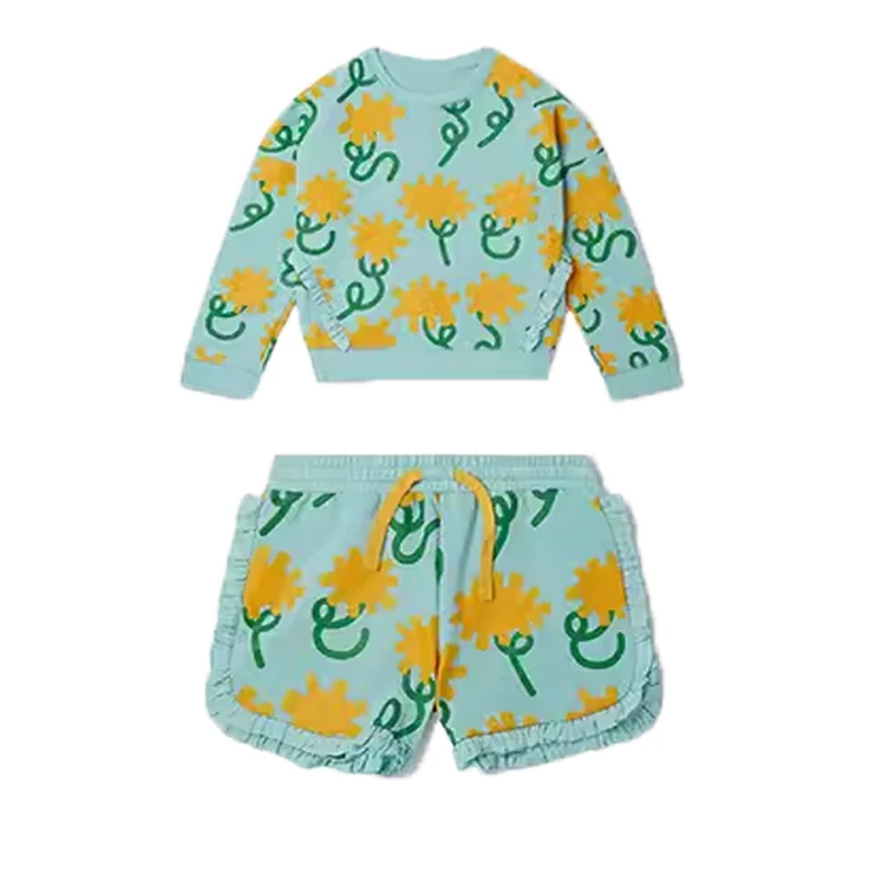 Customizable Wholesale Unisex Toddler Girls Casual Children's Wear Sweatshirt Shorts Clothes Sets