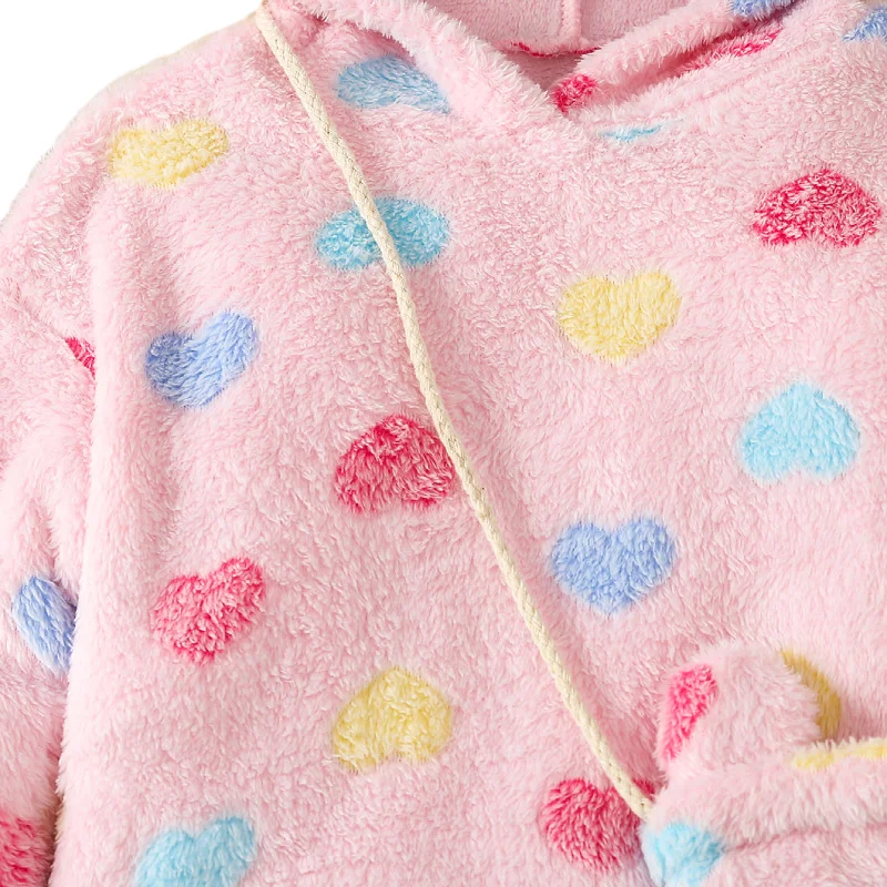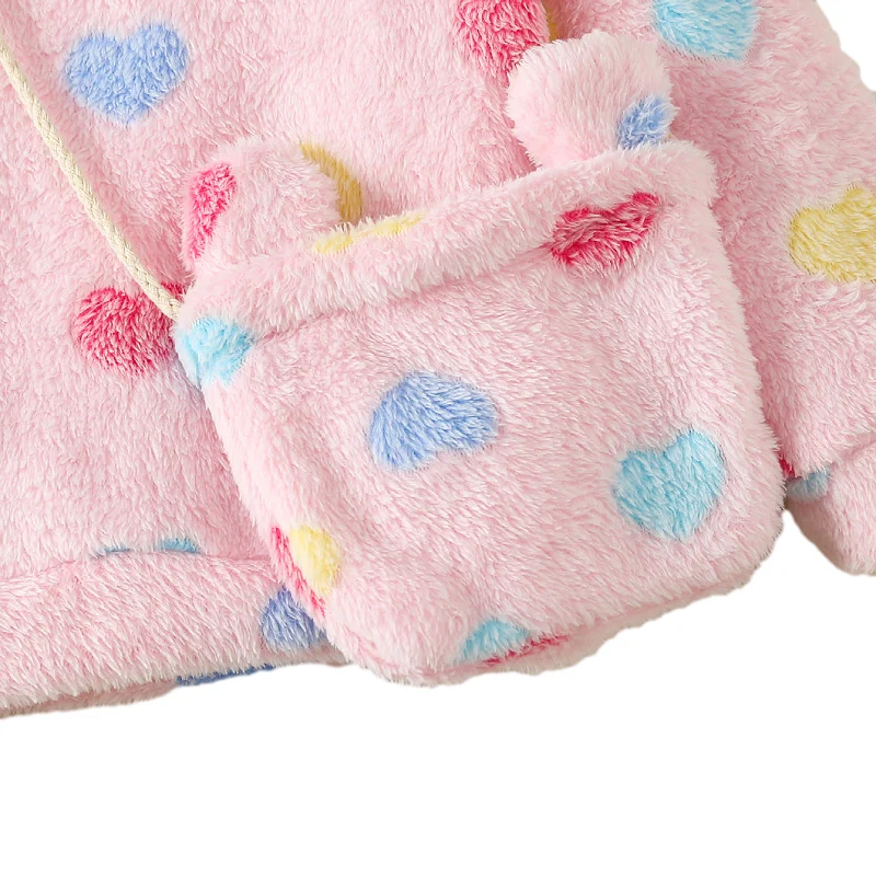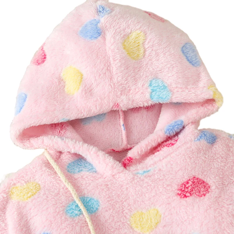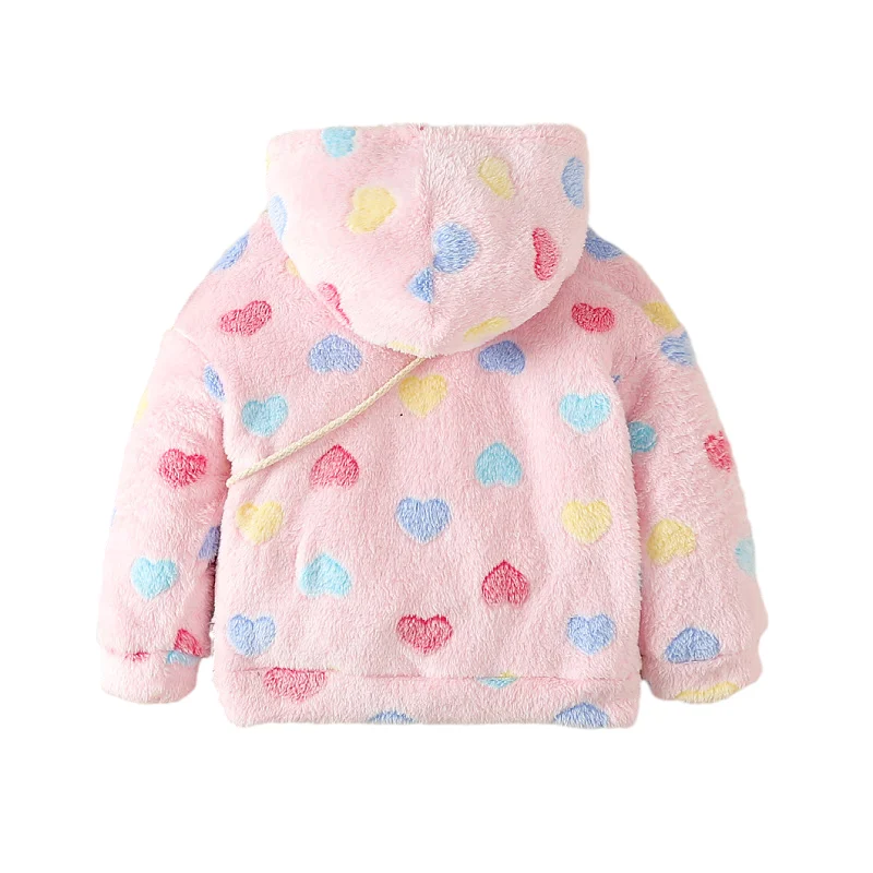 Mother's Day Girls Cute Hooded Love Coats Fashionable Children Outwears Brush Cotton Jacket for Kids