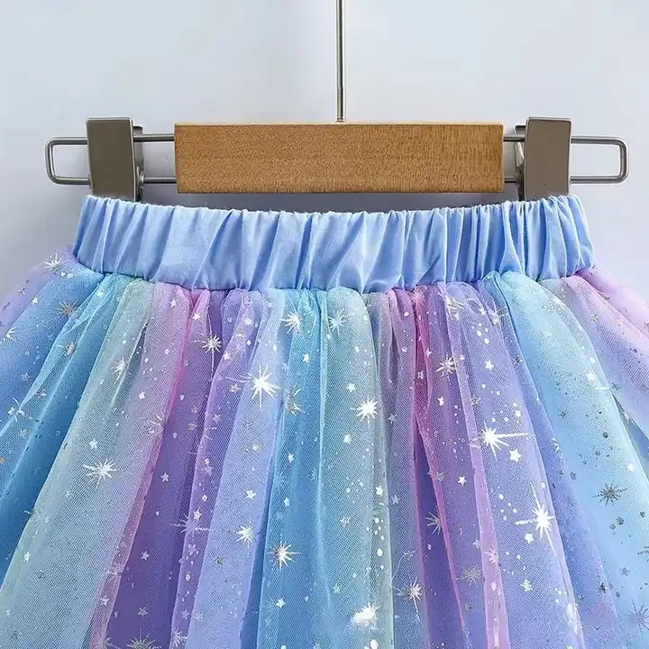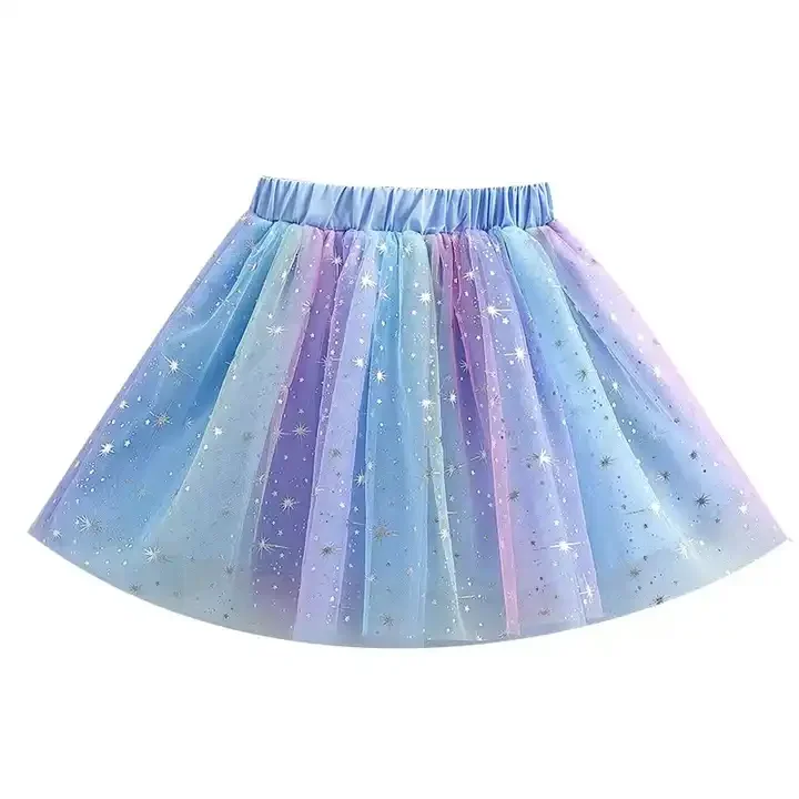 Customizable Newest Design Sweet Rainbow Tutu Skirts Tulle Sequined Pleated Cute Girl Skirts Soft Children Skirts
