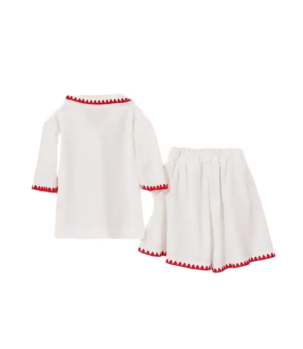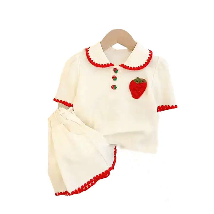 Customizable Lovely Sweet Embroidery Strawberry T-shirt Shorts Suit Breathable Kids Sets for Summer