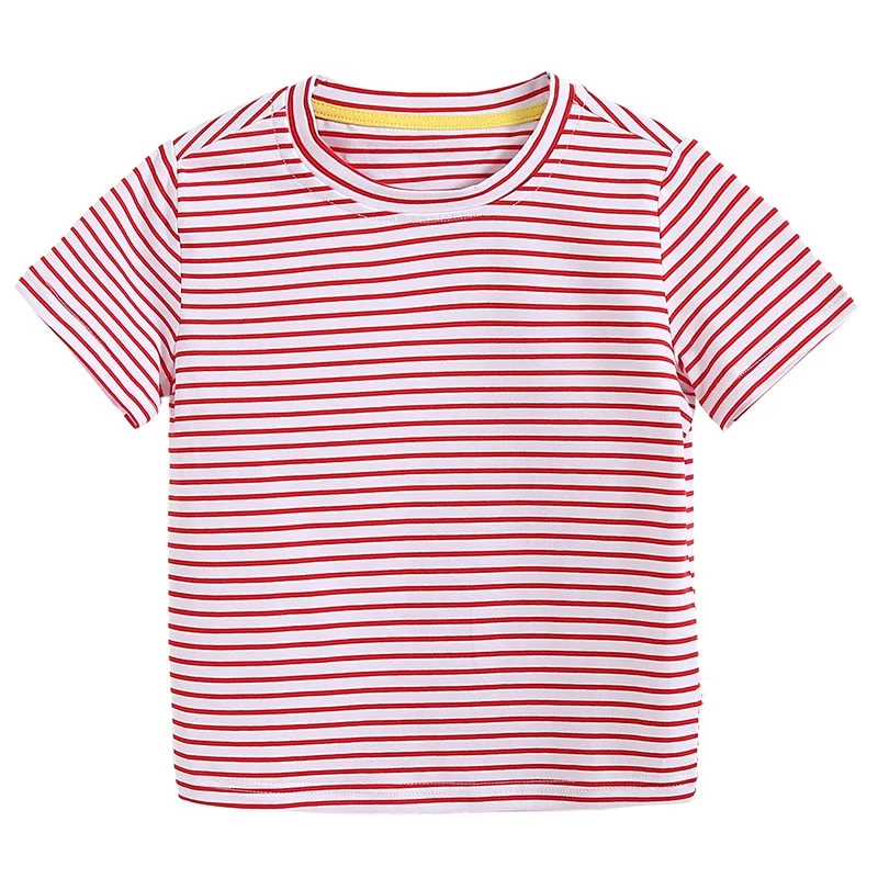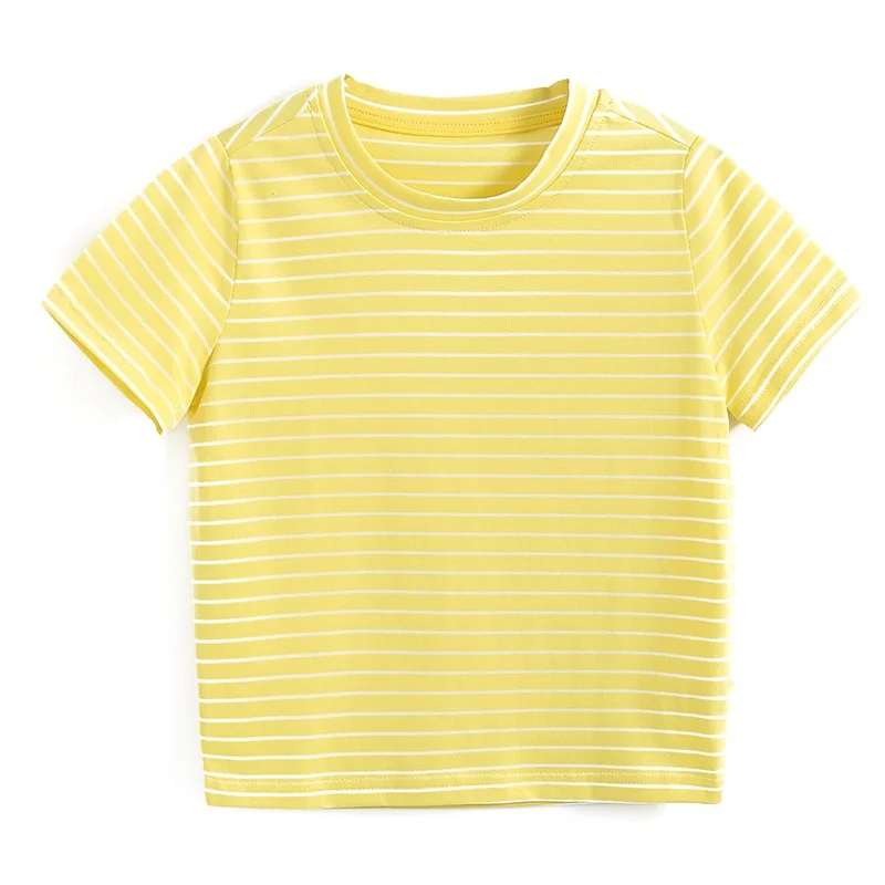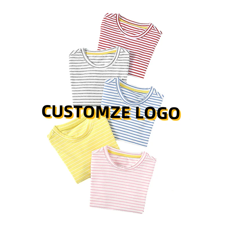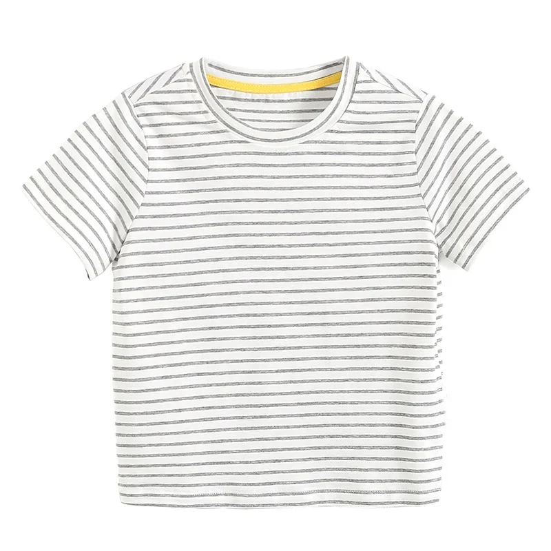 OEM ODM Summer 100% Cotton Striped Boys T-shirts Solid Color Blank Kids T-shirt With Customized Logo