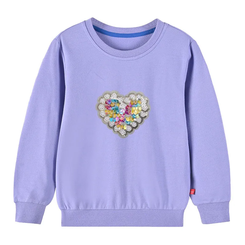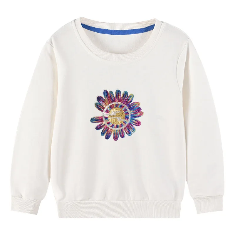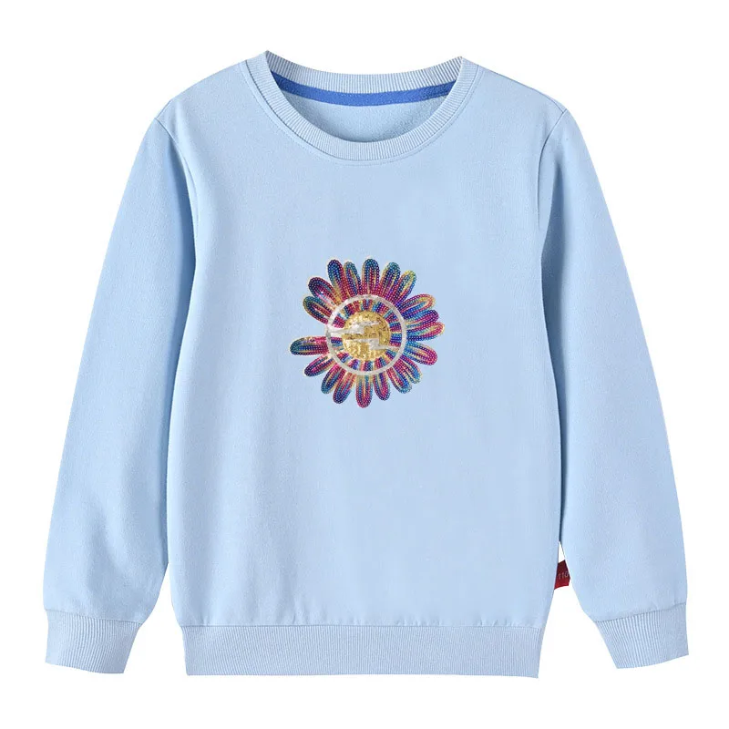 Hot Sale Kids Girl Spring Autumn Sequined Sun Flower Baby Hoodies & Sweatshirts with Crewneck