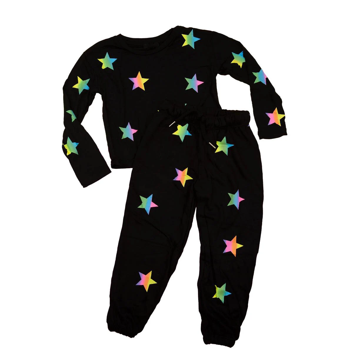 Stylish Girl Clothing Set Gradient Stars Printing Black Long Sleeves Summer T Shirt Set