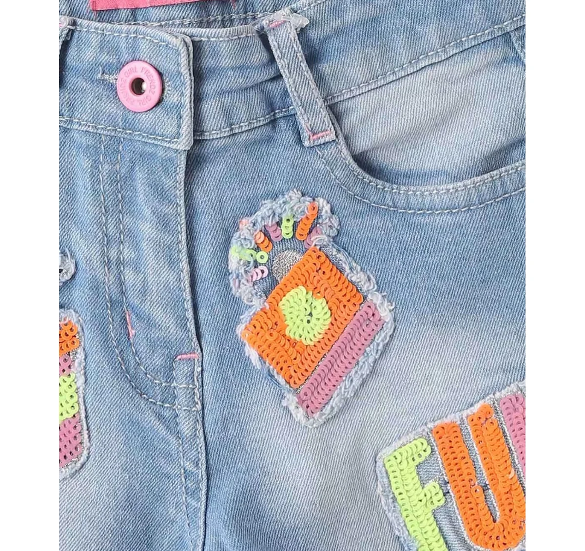Hot Sale Sequin Patches Jeans Girls Short Jeans Patchwork Fashion Pant Jeans for Girls
