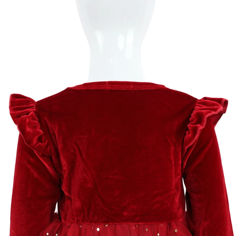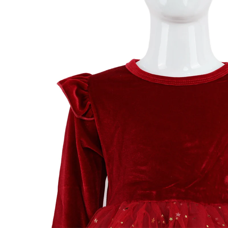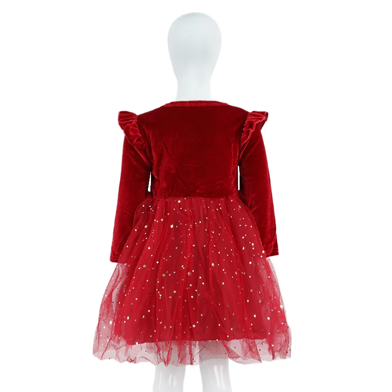 New Long-sleeved Girls Dress Children's Christmas Performance Costume Star Sequin Mesh Princess Skirt