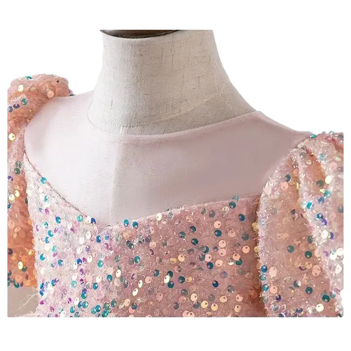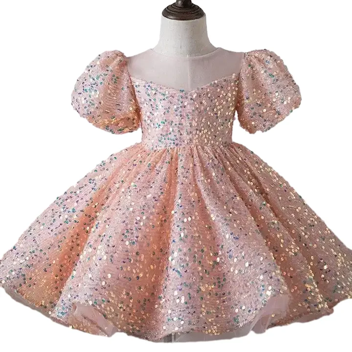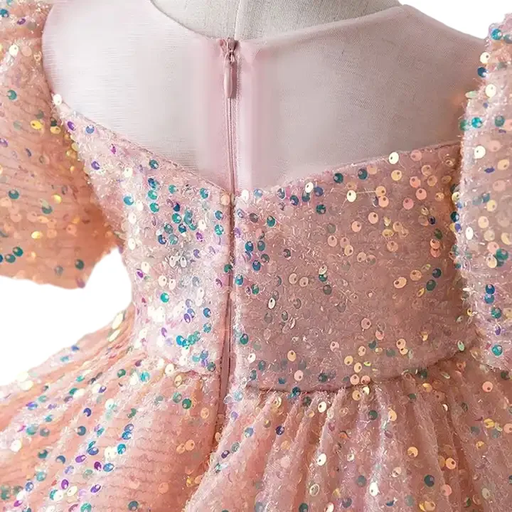Hot Sales Summer Pink Sequin Flower Girl Dress Cotton Polyester Evening Princess Dress for Girl