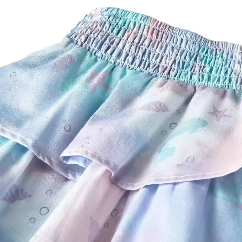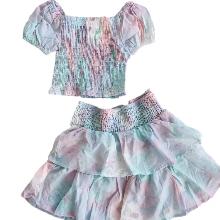 Newest Design Summer Super Cool Thin Woven Cotton Girls Clothing Sets Puff Sleeve T-shirts Skirts Two Pieces Kids Clothing Sets