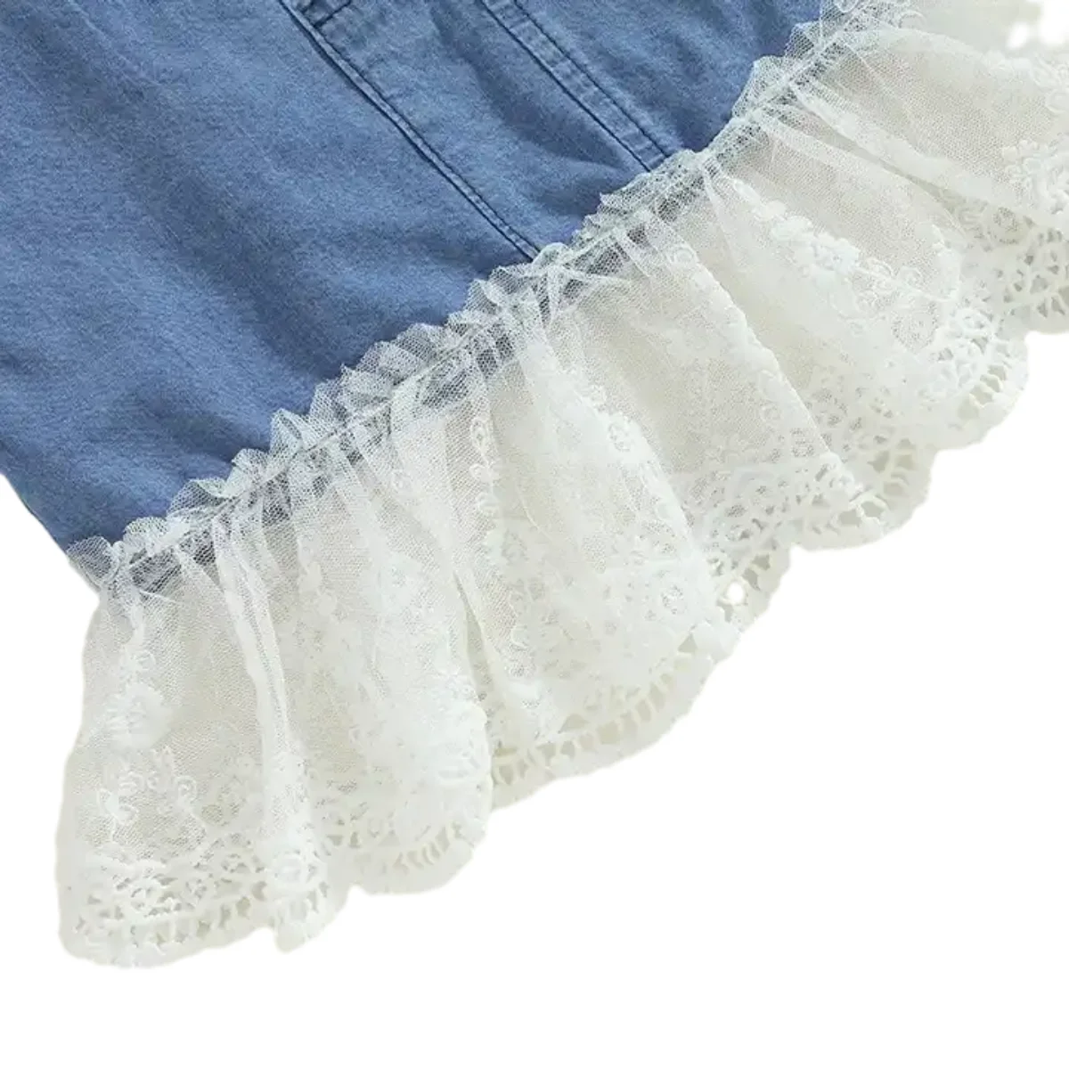 Customized Summer Kids Girls Dresses Sets Pit Cotton Solid Color Halter Top Denim Skirt Two Pieces Clothing Set