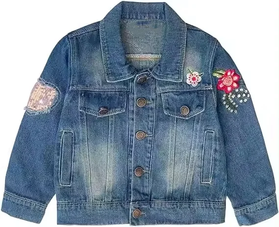 Best Selling Antumn Blue Jean Jackets With Button Custom Rainbow Patch Girls Demin Jacket