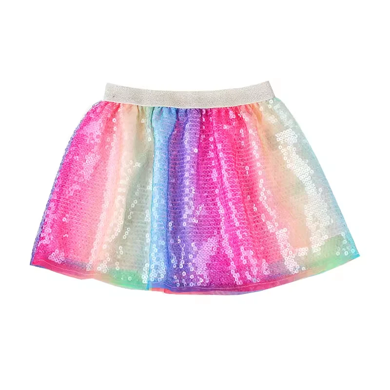 Customizable Stylish Designs Summer Girls Colorful Sequin Skirt Children's Sweet Sequin Skirt