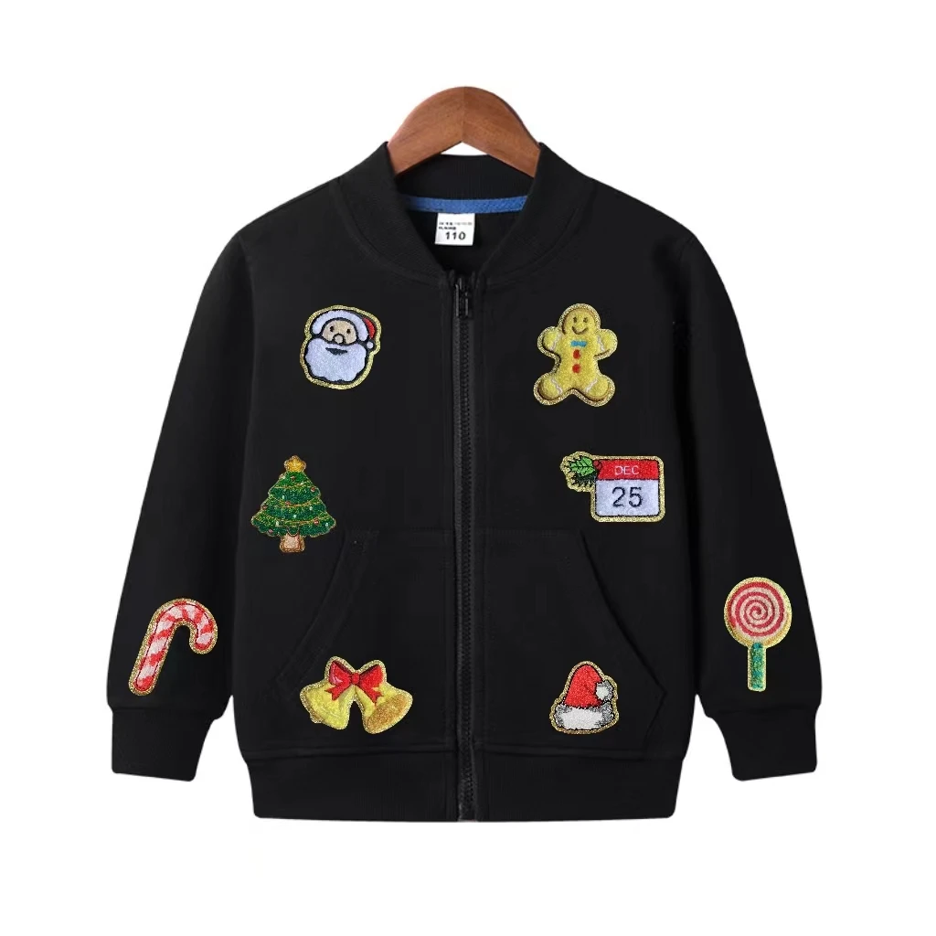 Wholesale High Quality Casual Christmas Custom Patch Children Boys Zipper Coats for Autumn