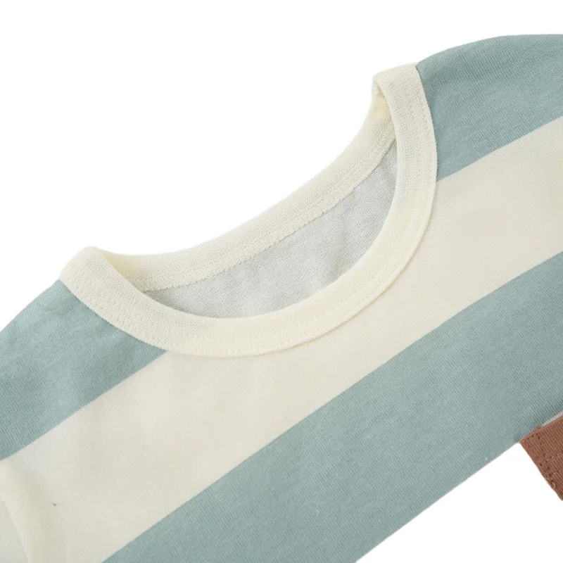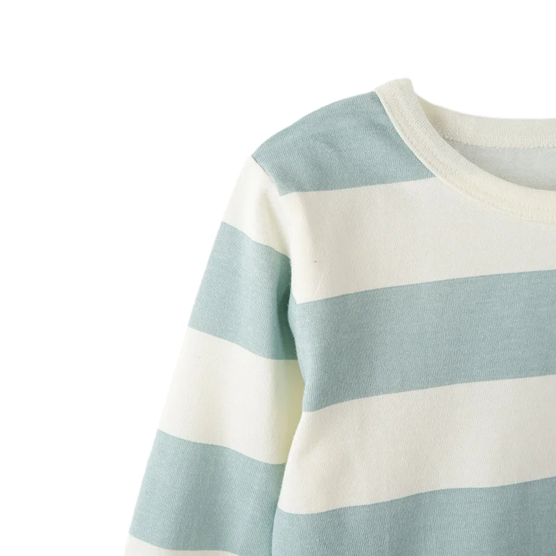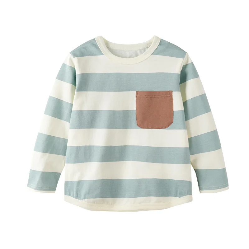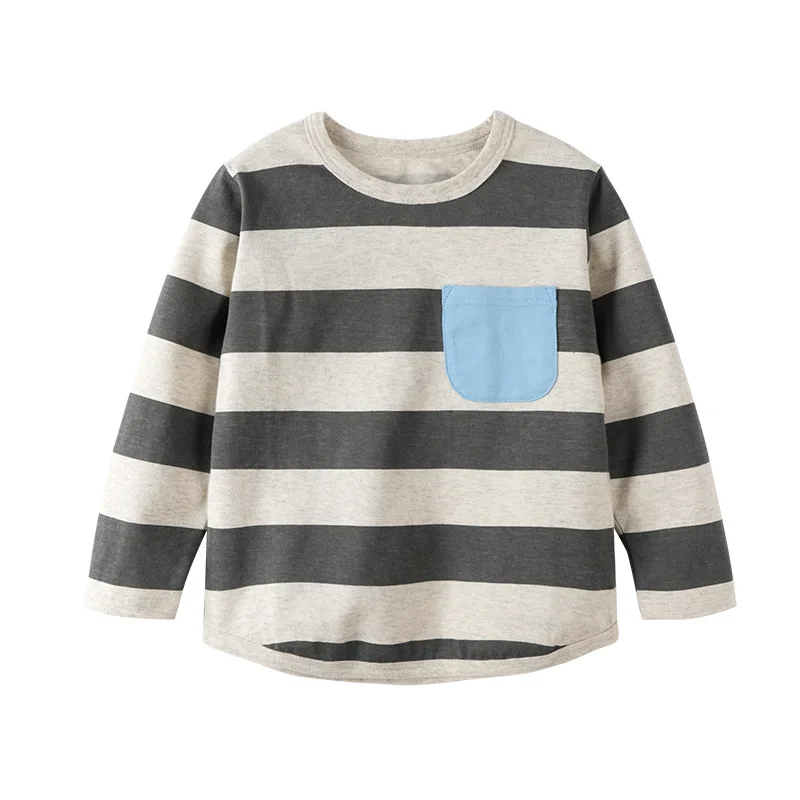 Customization Logo Spring Summer Boys T-shirts Long Sleeve Contrasting Striped 100% Cotton Kids Clothing