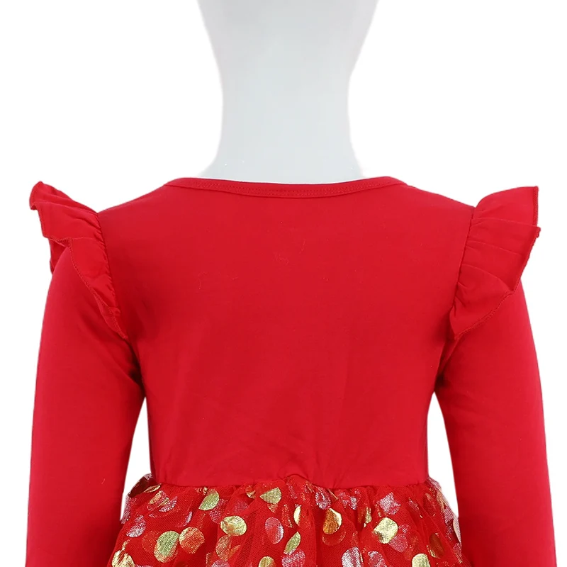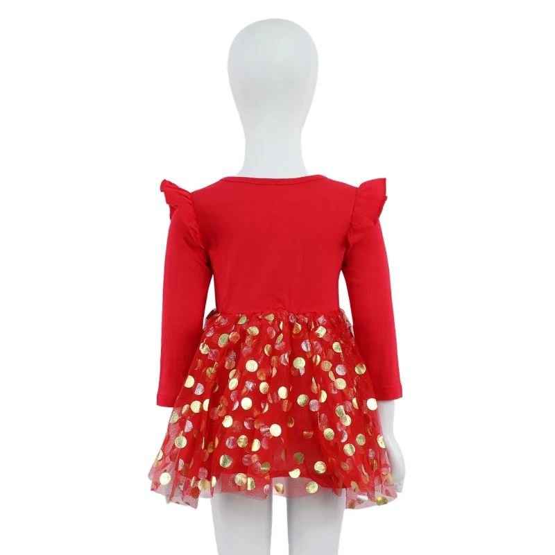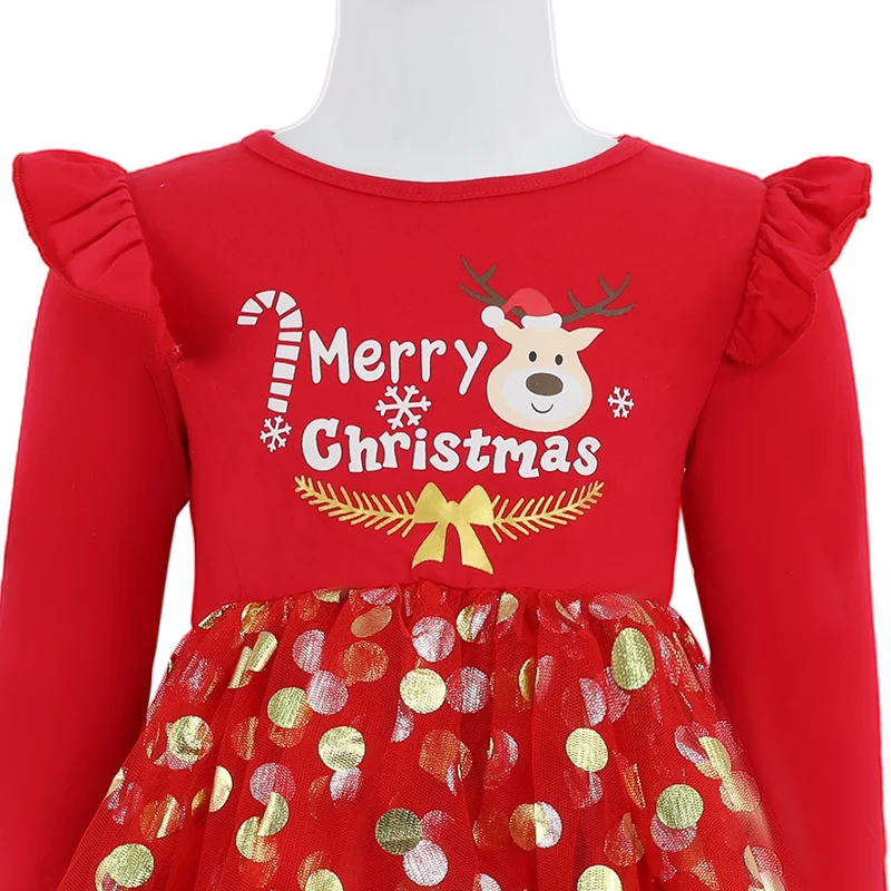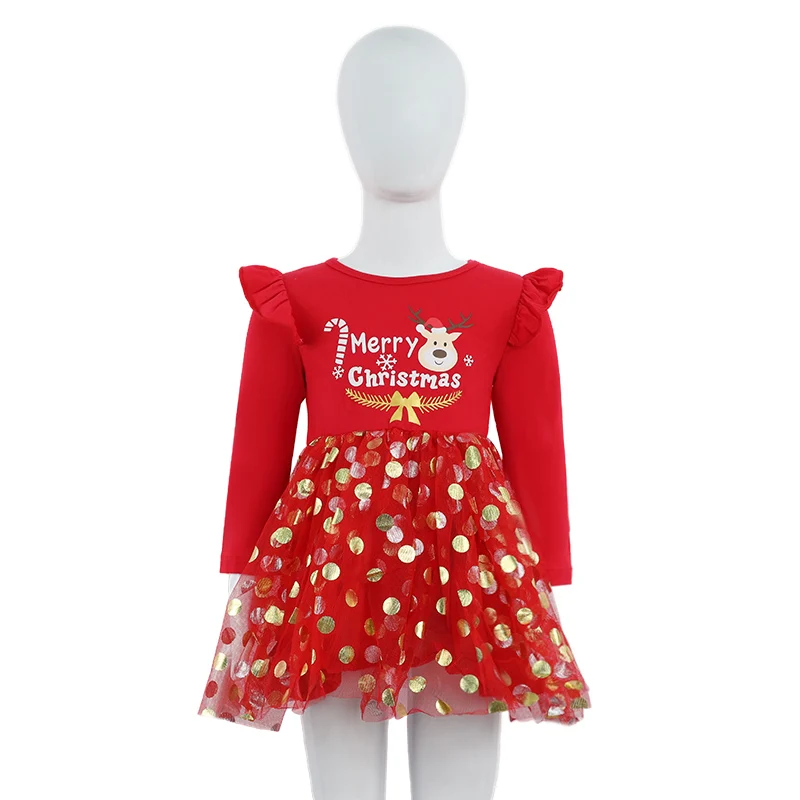 Customizable Children's Spring Autumn Style Girls Christmas Letter Pattern Long-sleeved Polka Dot Dress