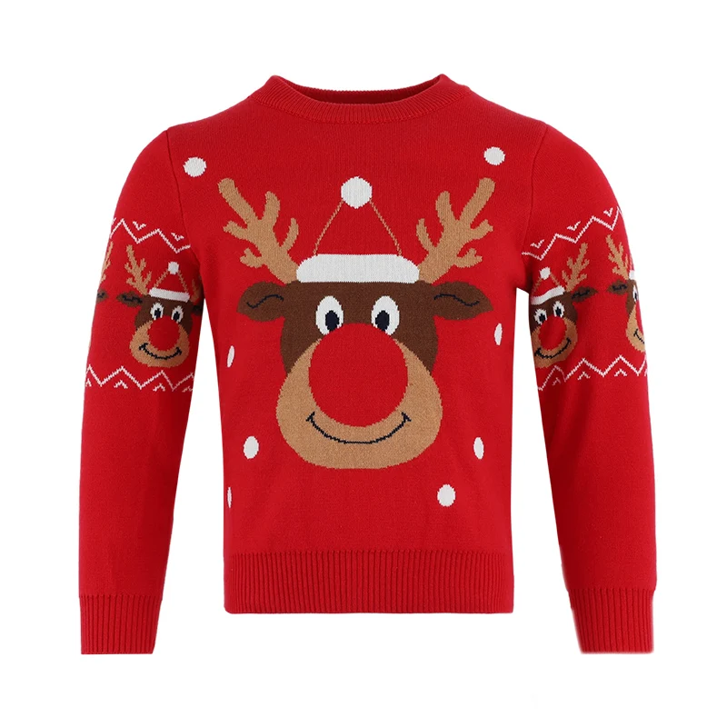Customization Girls Knitted Sweater New Baby Christmas Sweatshirt Cartoon Elk Children's Wool Top