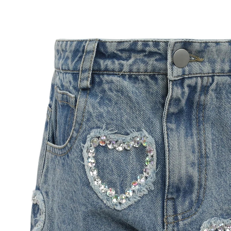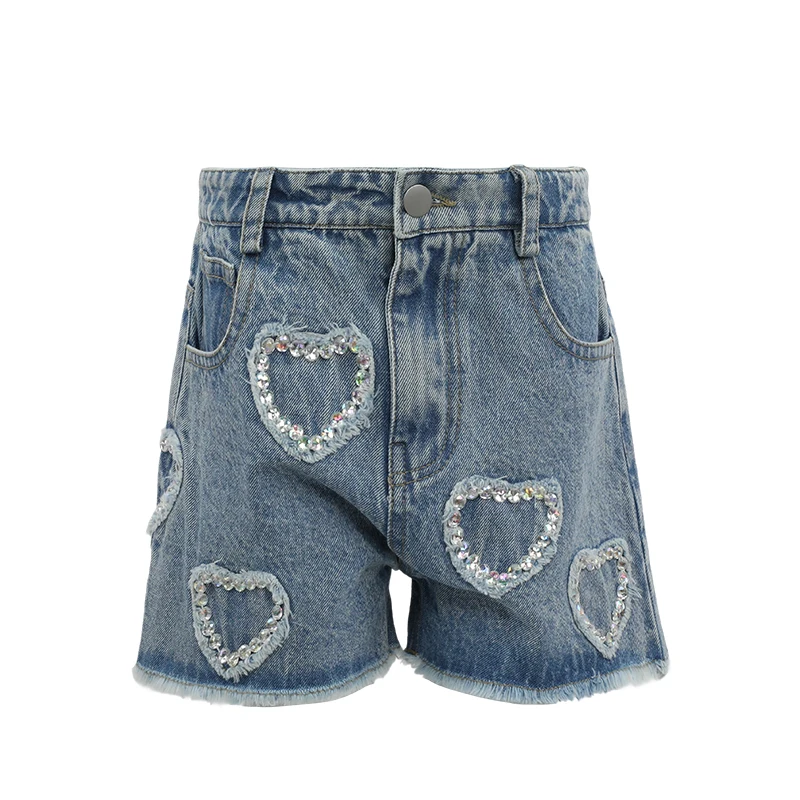 Customizable Summer New American Girl Denim Shorts Heart Rhinestones Retro Chic Perfect for Fashion Events